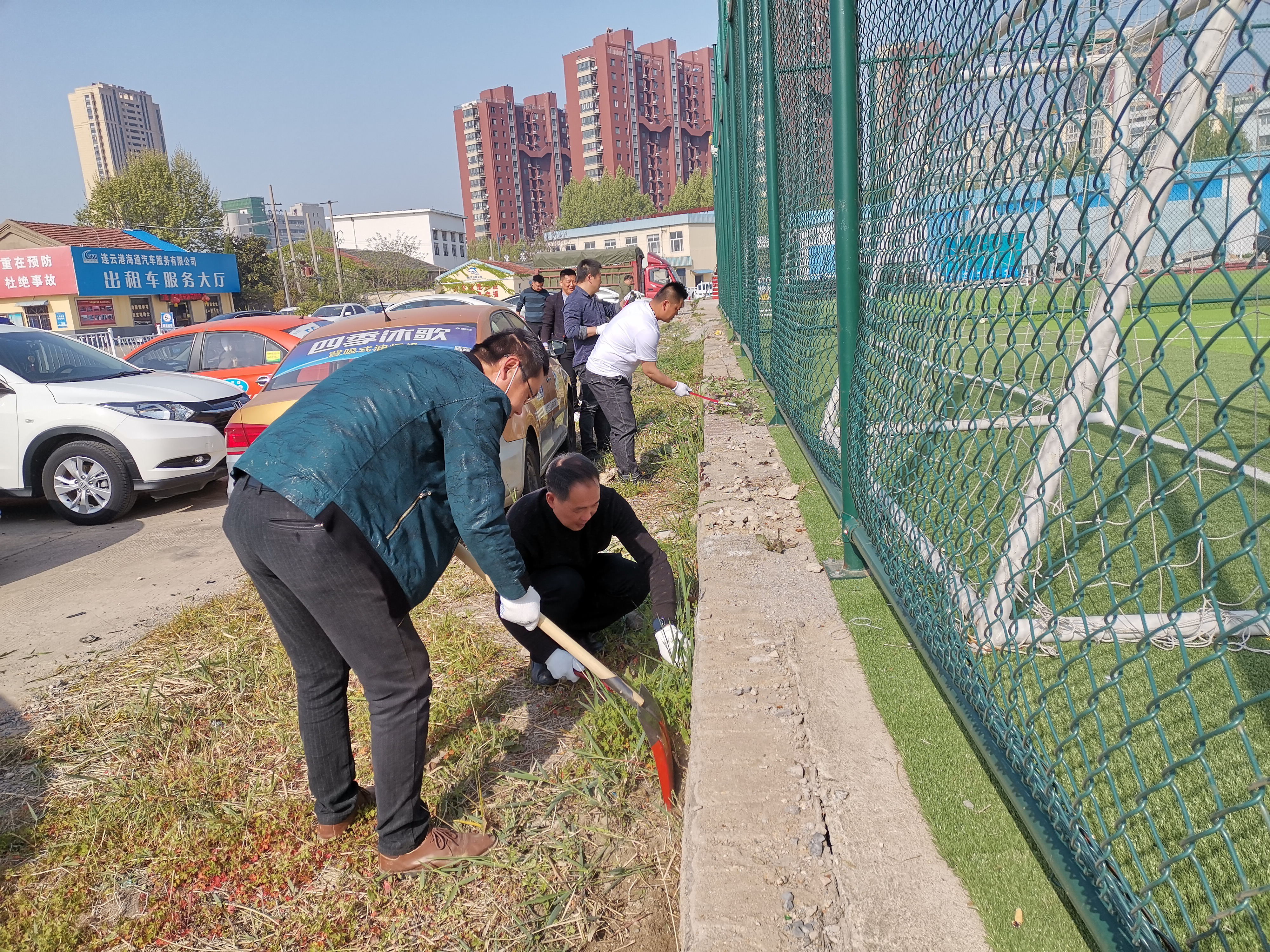 为扎实推进创卫复审工作,确保创卫复审工作任务顺利完成,出租汽车事业部开展了各类形式的宣传、整治工作,4月19日上午,事业部领导班子成员组织青年员工在紧张的工作之余对院内环境进行整治,努力打造一个清洁有序的办公环境,增强职工的创卫责任意识、大局意识和参与意识。