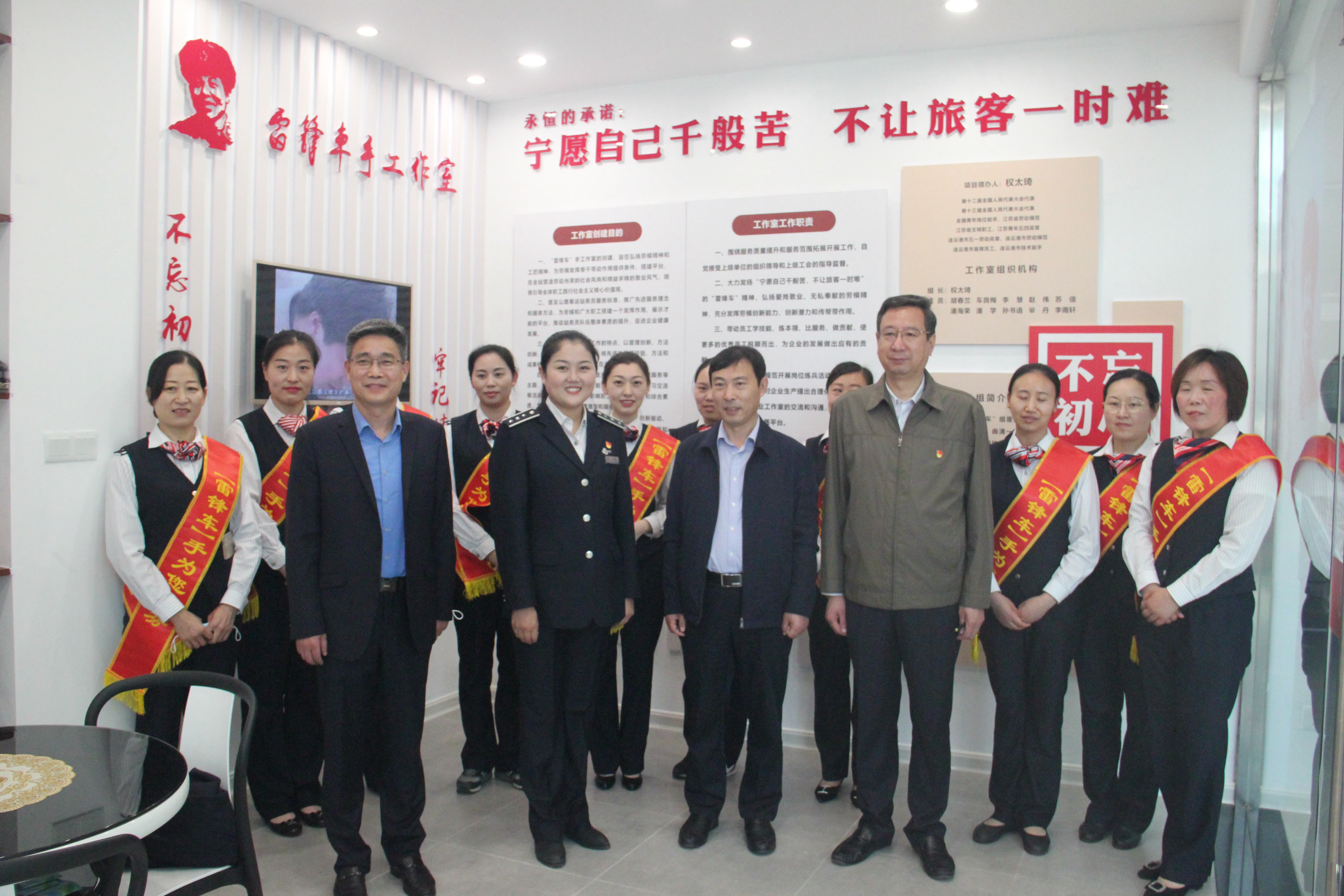 5月18日上午,新浦汽车总站举行“雷锋车”手工作室揭牌仪式。集团总经理仲伟涛、党委副书记陈金师出席仪式并为工作室揭牌,汽车公司领导班子成员、“雷锋车”手和职工代表参加揭牌仪式。