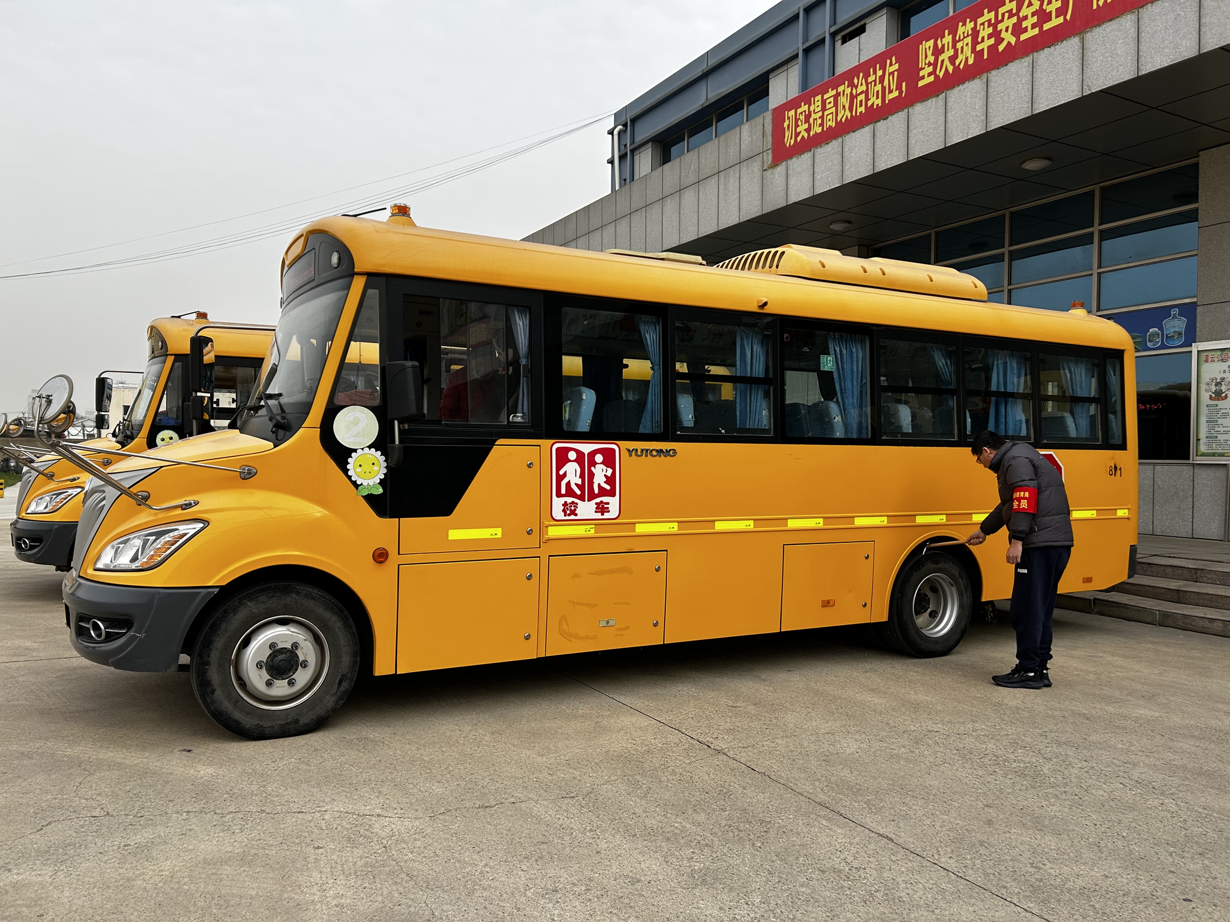 校车安全无小事,学生是祖国的未来,家庭的希望,欣达校车一直以来都将校车安全放在心头,除了定期对校车司机以及照管员进行安全培训,更是要求每位驾驶员在发车前都需要“多走一步、多敲一锤、多看一眼”,巡车时眼、耳、手并用,多敲敲、多看看,把牢安全行车第一道关口,将“安全”烙入心间,全面消除了校车安全隐患,全力确保学生乘车安全。