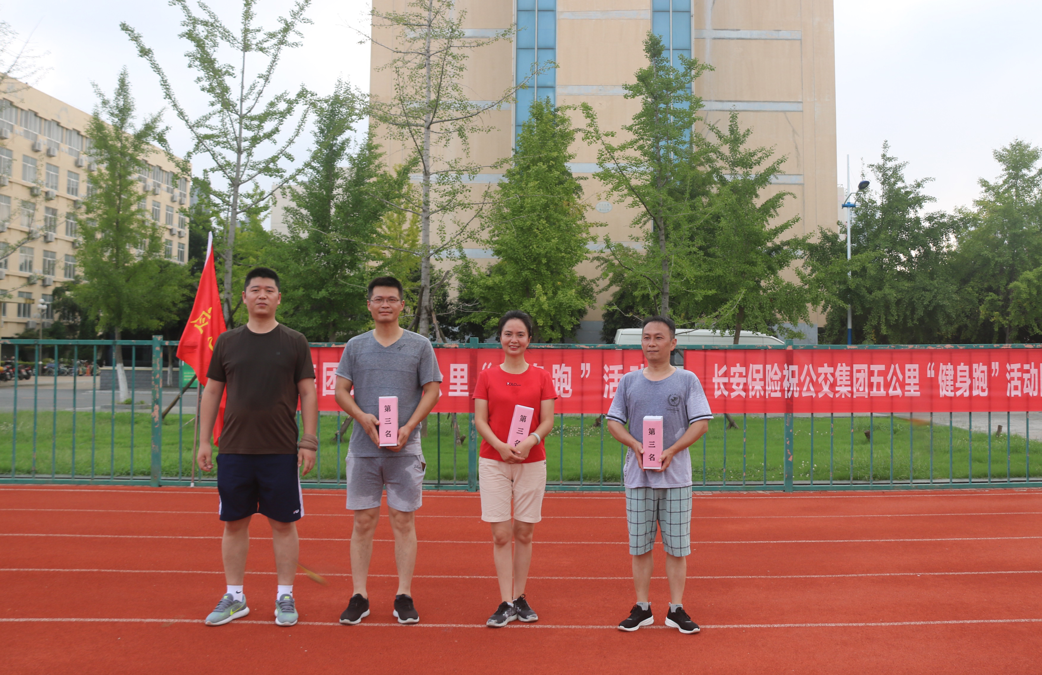 本次拉练赛,赛程共计5公里(跑道12.5圈),并根据性别和年龄科学分组:男子1组(45周岁及以上)、男子2组(45周岁以下)、女子组,每组根据到达比赛终点的先后顺序依次选出第一名、第二名、第三名;赛事采用统一编号,人工计时,7名工作人员对指定参赛选手的圈数记录及总时间登记,确保选手成绩更加精确;赛前,集团在安全保障、医疗保障、体能补给等方面做了充分准备,确保拉练赛顺利进行,本次比赛第一名奖品由长安保险公司赞助。