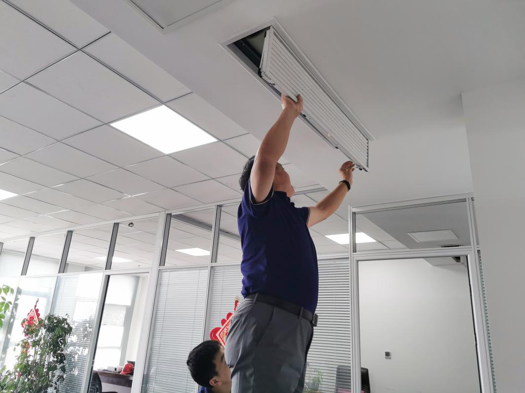 公司的空调滤网需要清洗了,这个我擅长”在本轮疫情防控的关键时刻,空调运维人员无法上门的情况下,港嘉公司项目管理部经理王吉银主动请缨,清洗中央空调滤网,除尘除菌,加入此次疫情防控工作中去。