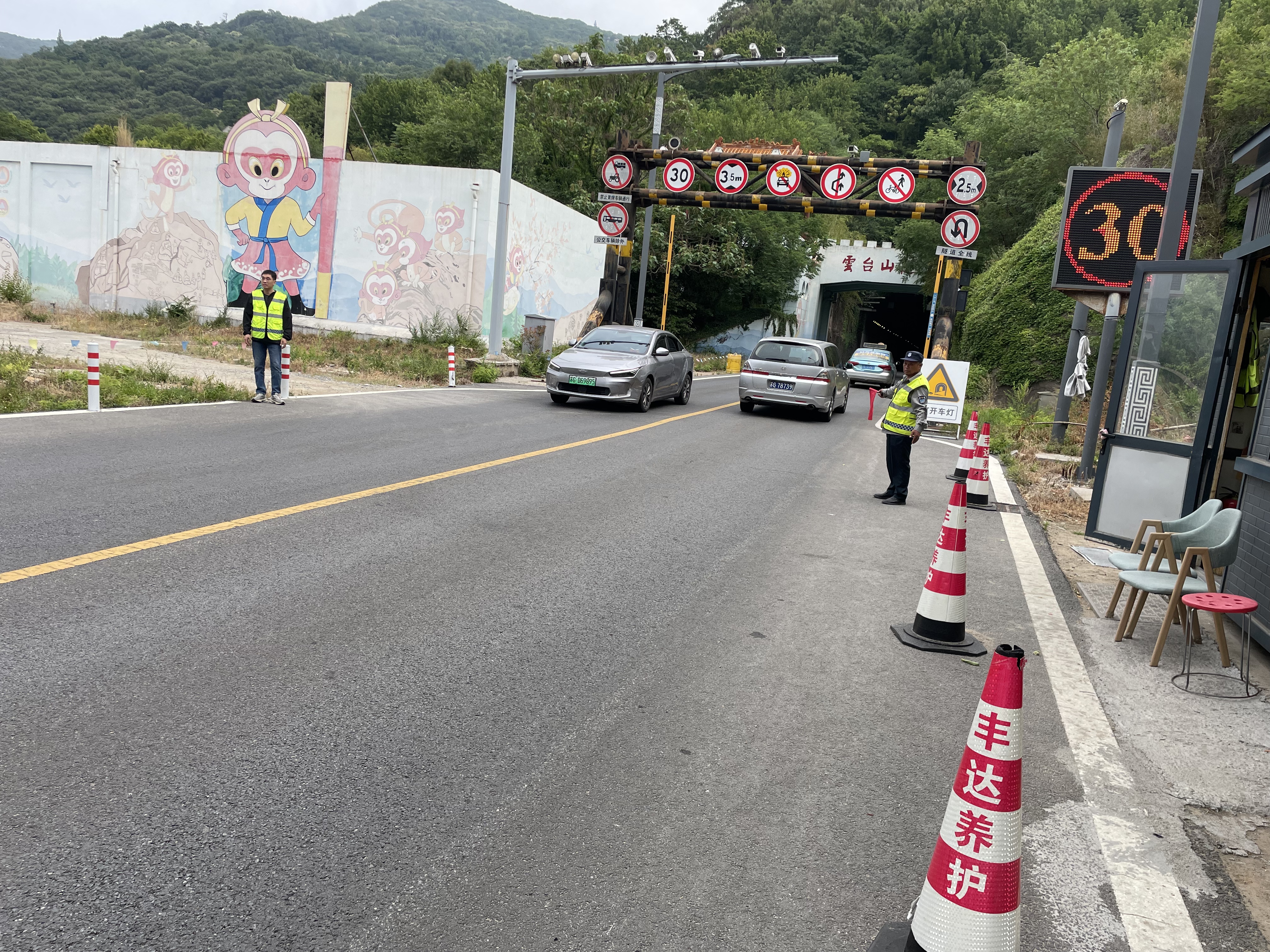高速养护分公司:为给港城市民节日期间提供安全舒适的出行环境,公司重点对站区、服务区匝道展开保洁工作,同时在东海西收费站、邳州西收费站、灌云南收费站、灌南收费站设置了应急养护备勤点,日均道路巡查3次,共投入巡查人员6人次、机械4台次。841隧道项目为保障节日期间港城旅客车辆平稳安全通行,联合安保人员共同指挥疏导来往车辆,累计疏导车辆6000车次。