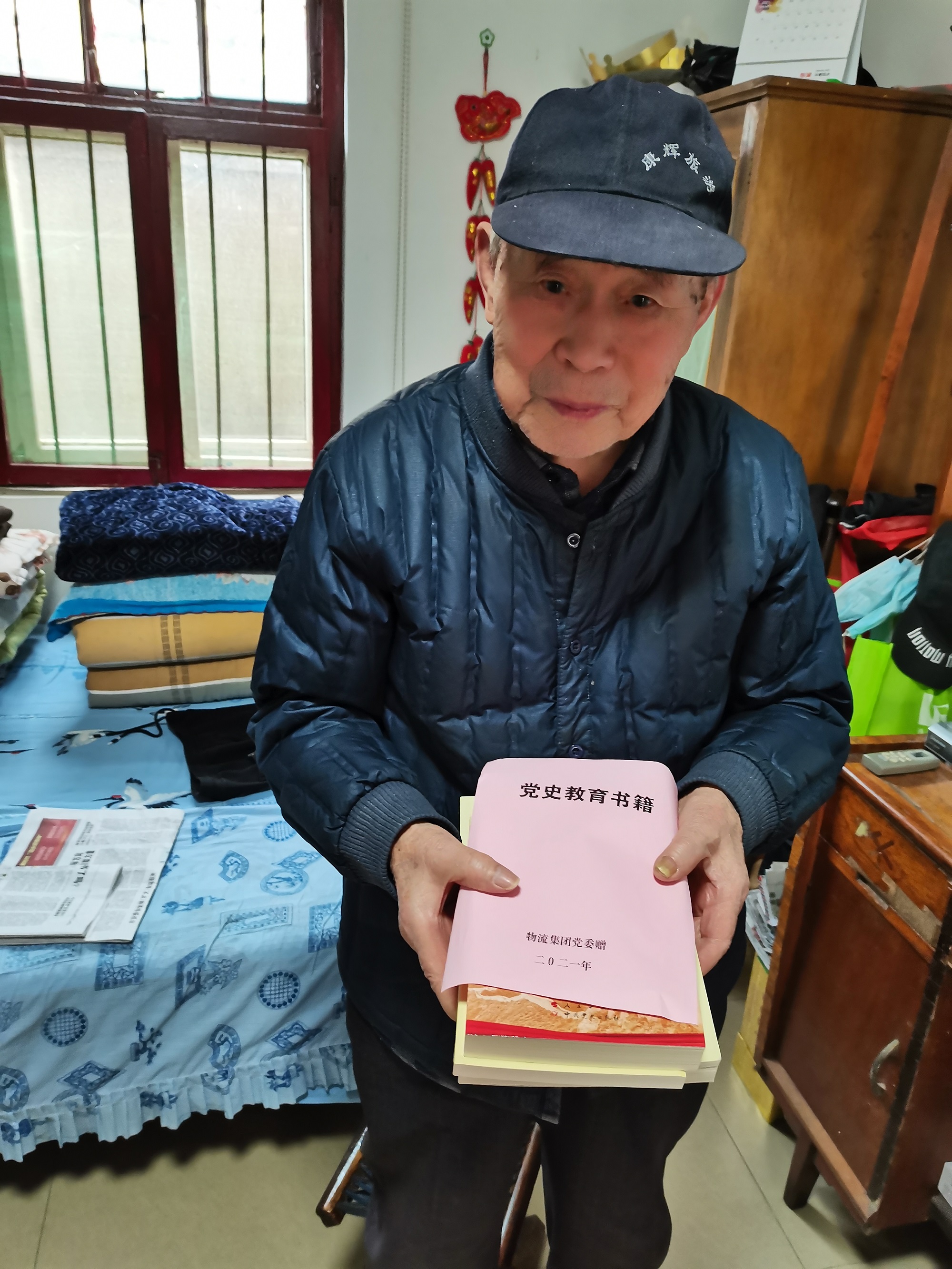 94岁高龄的离退休老干部王存柱是一位有着74年党龄的老党员,他接过物流集团党委送来的党史学习资料激动地说:“党组织没有忘记我,不仅为我送来了党史学习书籍,还安排人员陪我一起学习党史知识,帮我重温党的光辉历程,感谢组织的关心。”