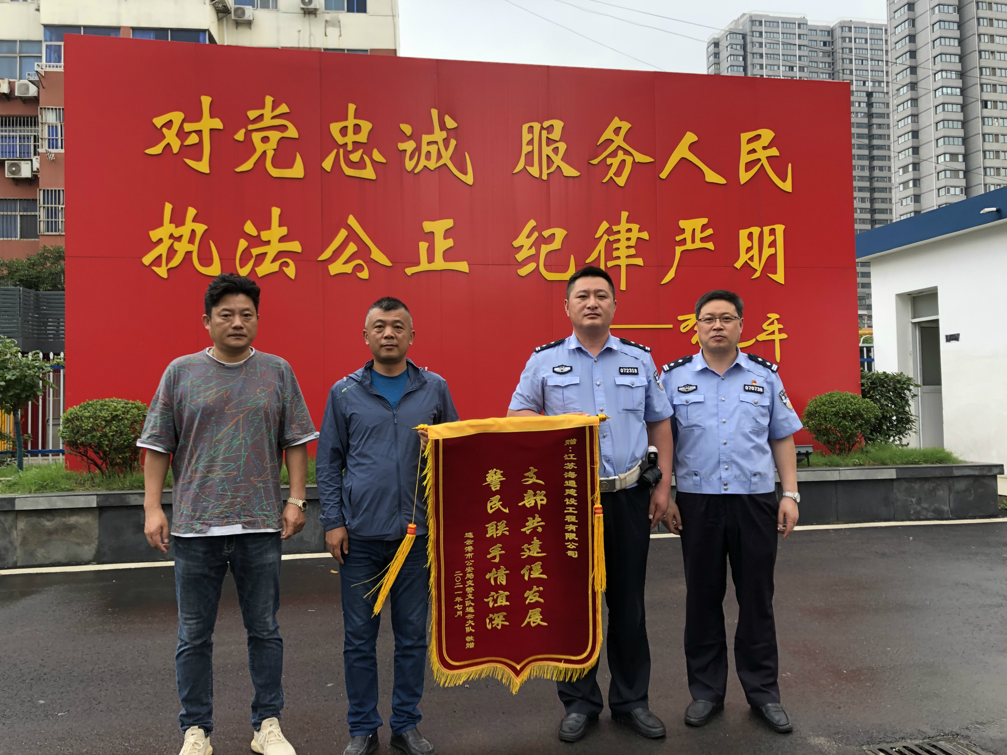 该项目中的5条出新道路分散在连云新城主城区,封闭施工给城区的交通带来了一定压力。为了减少施工对城区交通的影响,市交警连云大队主动配合建设单位,给予大力支持和帮助,并采取最佳封闭方案,力争交通畅通与施工建设两不误。由此,市公安局交警支队连云大队党支部还与江苏海建交建分公司项目党支部开展基层党组织结对共建活动,双方互赠“支部共建促发展、警民联手情谊深”锦旗。为了更好的服务群众出行,双方形成优势互补、资源共享、共同发展的党建工作格局。连云大队主动协调,海建公司加快施工,双方通力合作,全力推进项目建设,争取早日为群众提供更加便捷的出行条件。