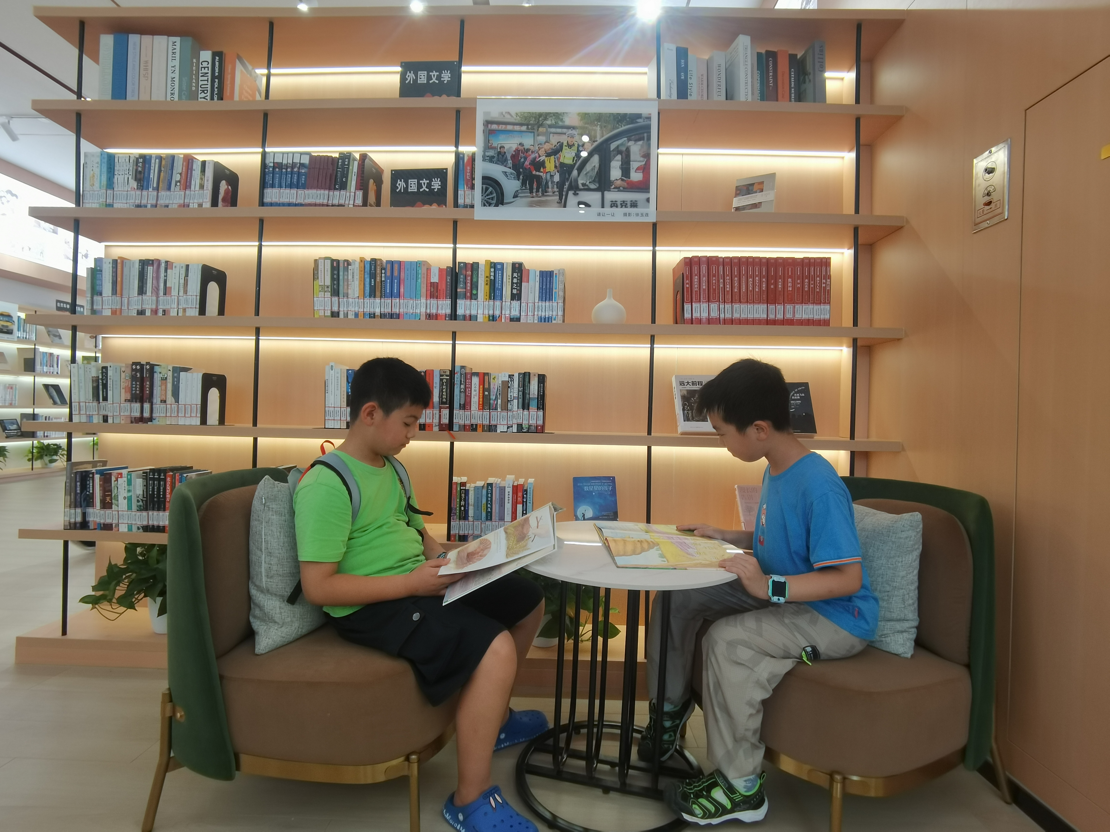 雷锋车城市书房环境舒适,图书丰富,放暑假后,几乎天天座无虚席。孩子们坐在阅览桌前认真翻阅自己喜爱的图书,遇到感兴趣的内容,还不忘和小伙伴一起分享、交流。