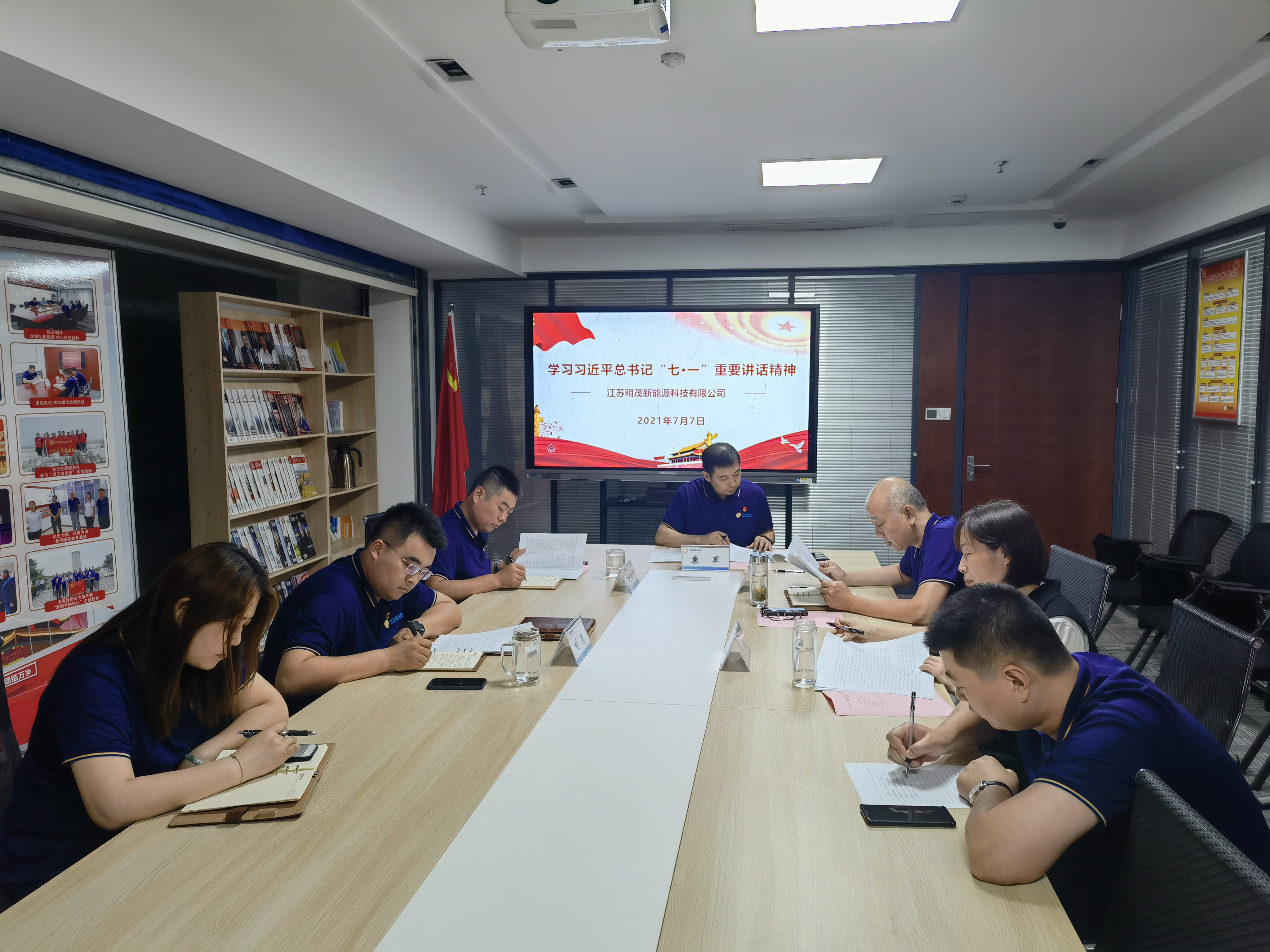 7月7日上午,明茂公司党总支学习中心组召开会议,学习习近平总书记在庆祝中国共产党成立100周年大会上的重要讲话精神,明茂公司党总支书记、总经理袁军主持并讲话,党总支副书记、工会主席王冰领学,中心组成员作交流研讨。
