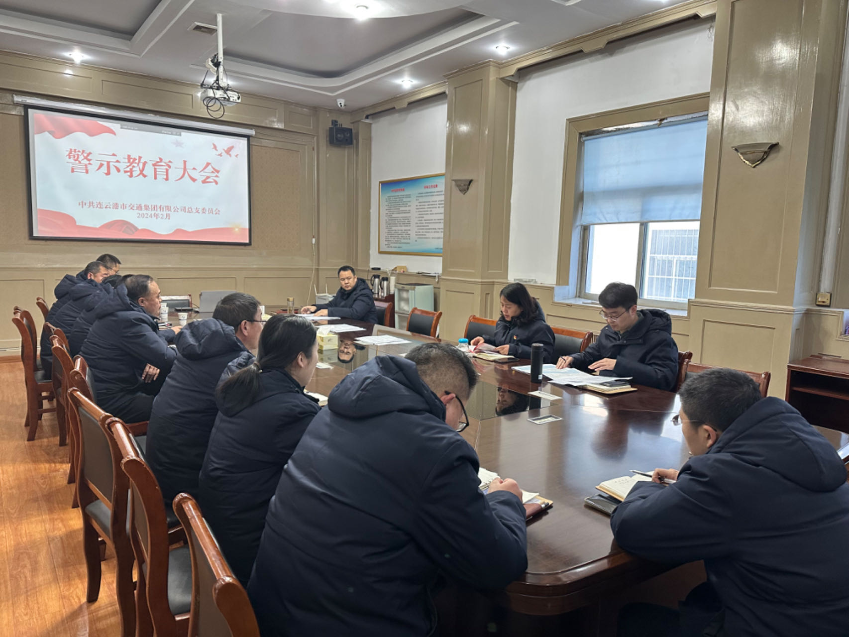 2月5日,交通集团党总支组织召开警示教育大会,集团领导班子成员、各公司、各部门负责人、党员代表和重点岗位人员参加会议。