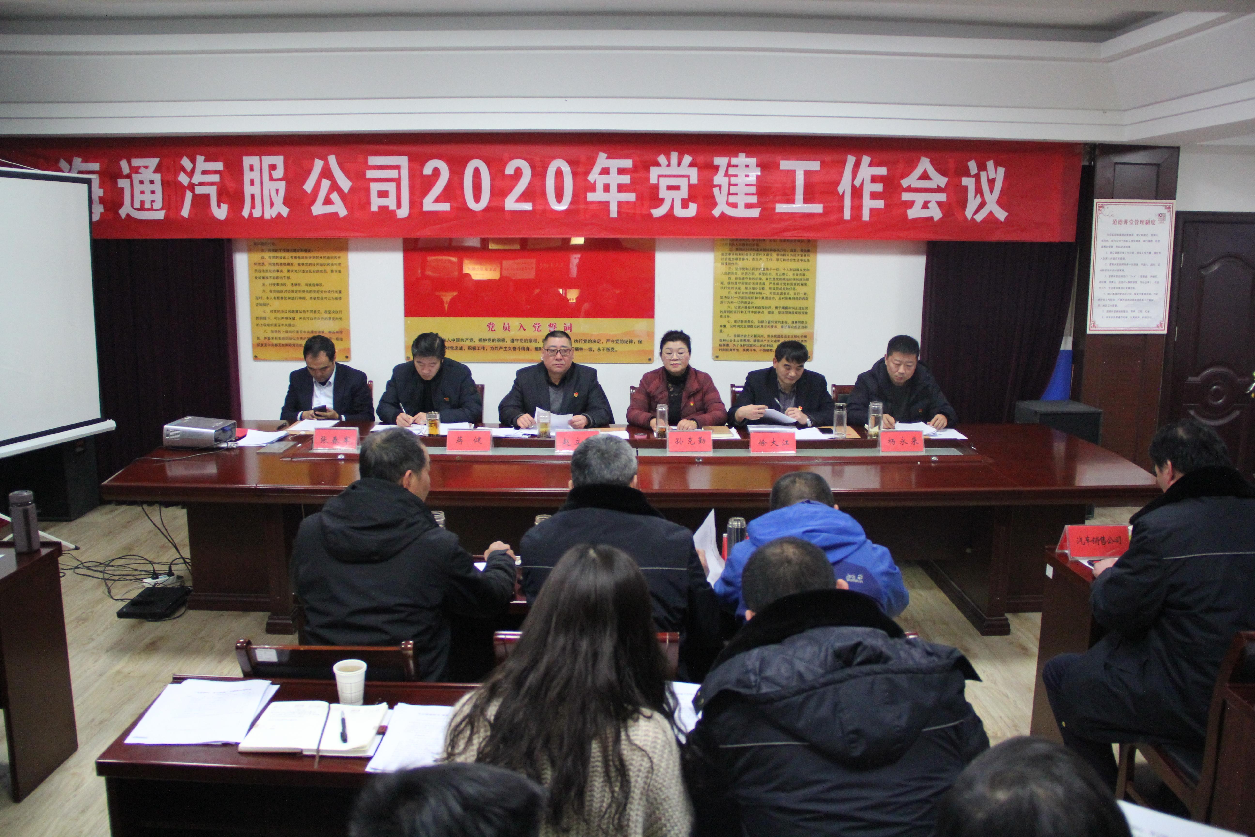 会上,汽服公司党委书记孙克勤作了题为《不忘初心使命,勇于担当作为,汇聚新时代力量,将思想政治工作向企业前沿阵地强力推进!》的党建工作报告。报告总结了2019年公司党建工作开展情况,部署了2020年党建工作任务。孙克勤在报告中强调,2020年公司党建工作要以习近平新时代中国特色社会主义思想为指导,按照集团党委的统一部署,继续开展"不忘初心、牢记使命”主题教育活动,有质有序开展党内组织生活,强化意识形态宣传教育,继续加强班子建设、干部队伍建设、党员思想建设、企业文化建设,开创企业党建工作新局面,为公司快速转型发展提供强有力的组织保证。