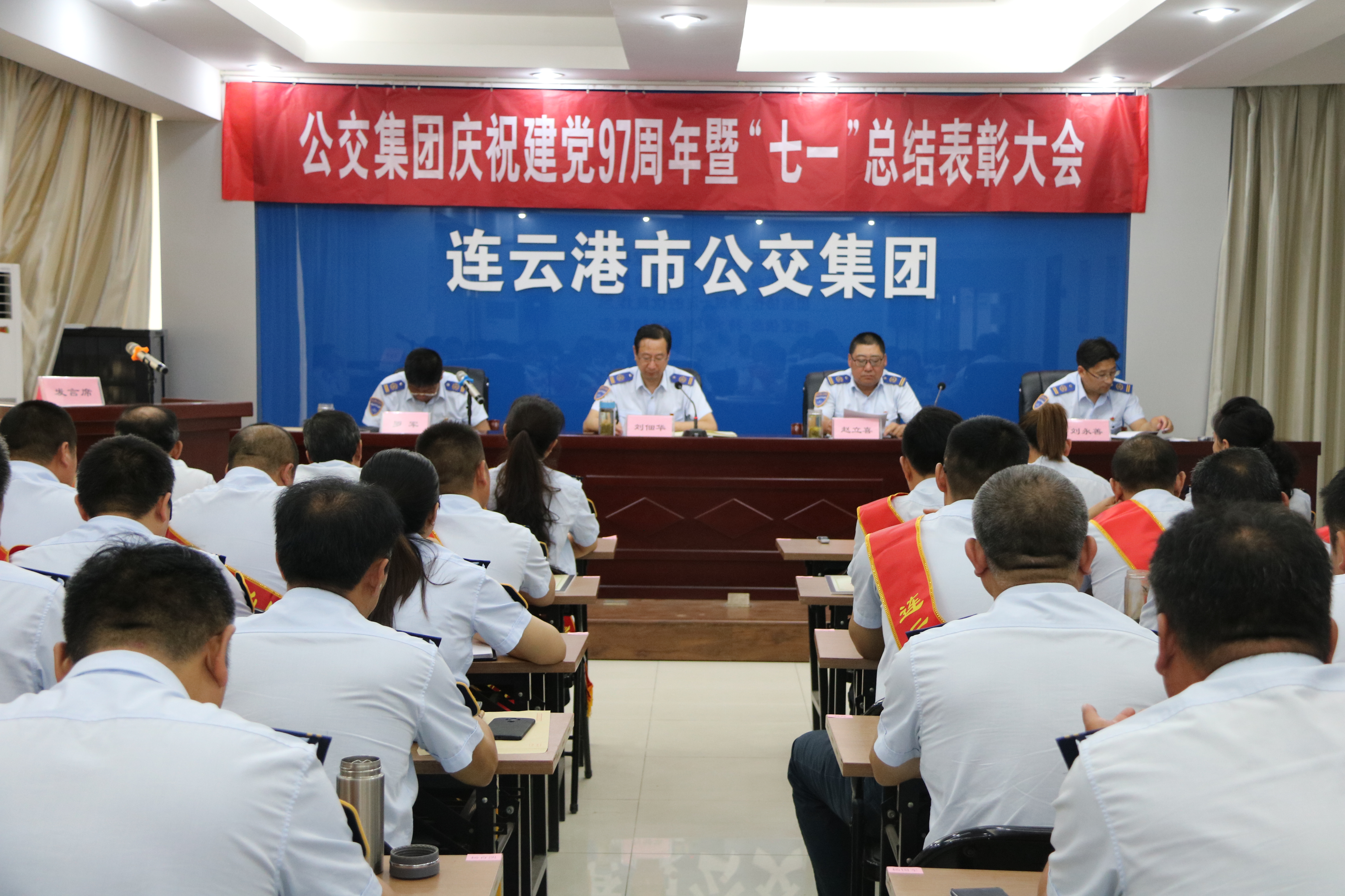 6月27日上午,为纪念中国共产党建党97周年,贯彻落实党中央、省、市国有企业党的建设工作会议精神,进一步统一思想和步调,共同为全市“高质发展、后发先至”大局作出贡献,公交集团隆重举行庆祝建党97周年暨“七一”总结表彰大会,总结和部署集团党建工作,表彰先进、鼓舞干劲。集团领导班子、全体中层管理干部、基层三级党员干部、优秀共产党员、党员示范岗及基层党员代表等70余人参加会议,会议由集团党委委员、副总经理赵立喜主持。