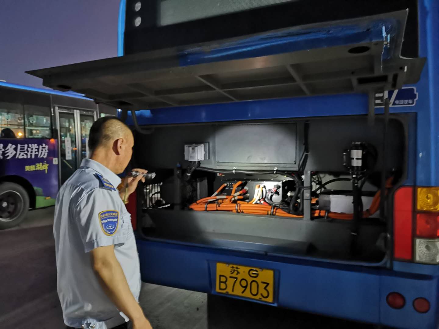 深夜,值班的公交人没有丝毫倦意,巡视场站,一辆辆检查停放在场站里的公交车是否关好电源、门窗,拔出钥匙,检查轮胎、发动机,用满身的汗水和满手的油渍,胳膊、腿上被蚊子“亲吻”过的痕迹总是让他们的严肃的脸上多了几分可爱,也是因为如此,才保障了新的一天每辆公交车正常运行。