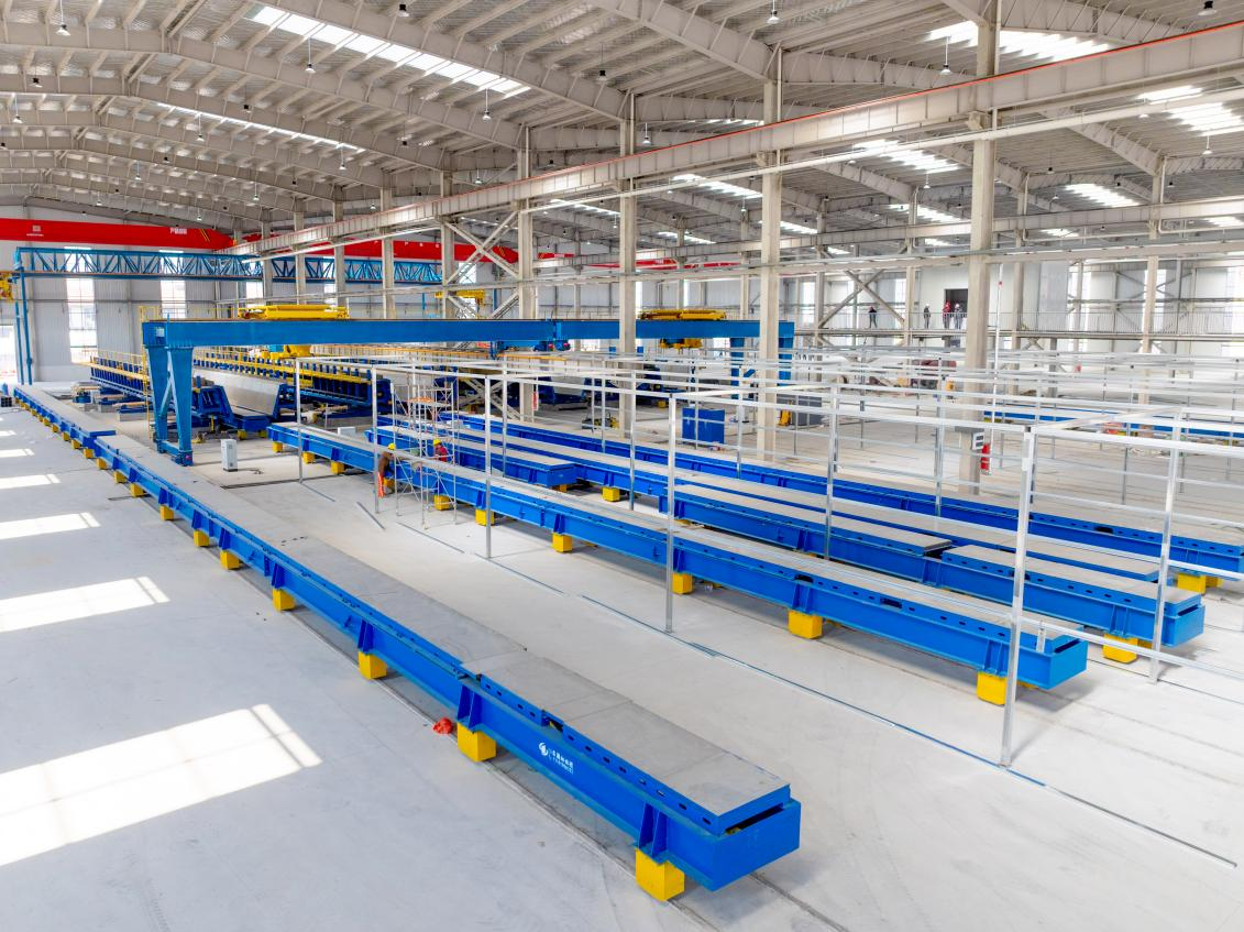 近日,江苏海建板桥基地智慧梁场场房建设已全部完成,施工生产线全部完成安装,智能化监控装备已进场施工。