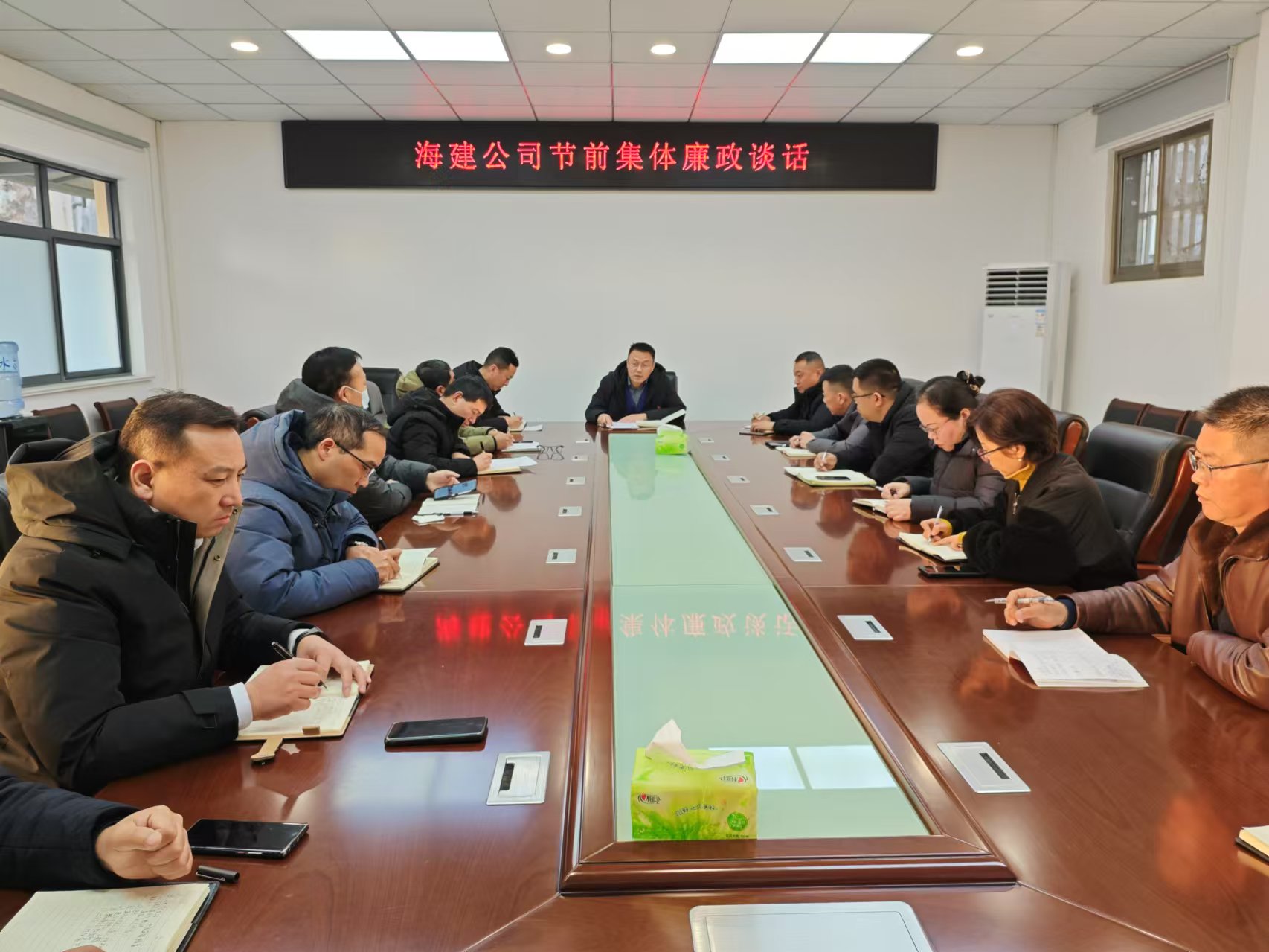 2025年春节将至,为深入贯彻落实全面从严治党要求和中央八项规定精神,持续深入开展党风廉政建设,确保全体党员干部干净过节、廉洁过节,近日,海建公司党委组织开展集体廉政谈话。