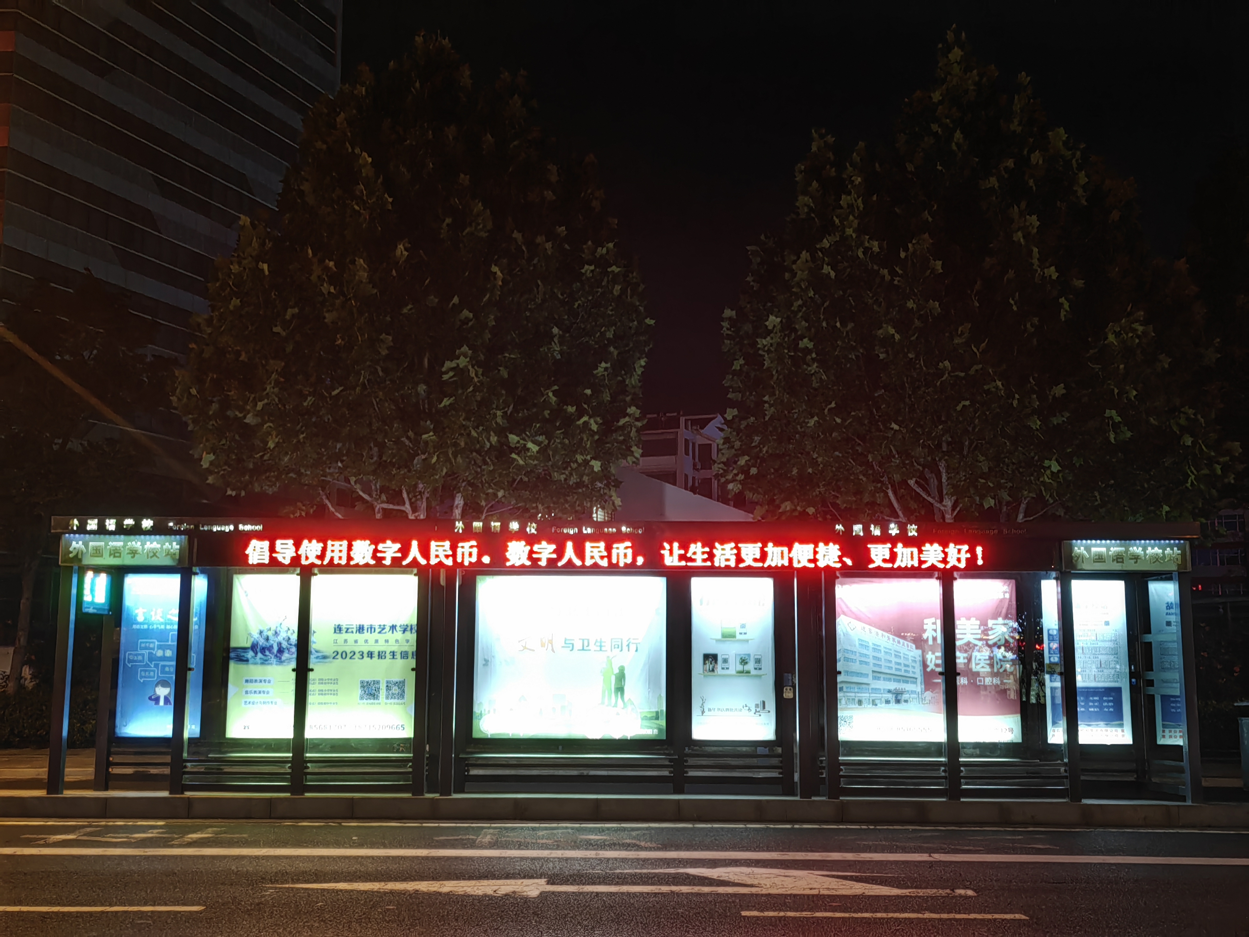 集团此次宣传工作开展于全市400余座常规公交站亭,充分利用公交站亭辐射面广、直达基层的宣传优势,利用站亭LED条屏,全天滚动播放宣传标语。标语内容为:“倡导使用数字人民币。数字人民币,让生活更加便捷、更加美好!”交通集团将最大程度助力宣传,切实提升公众对数字人民币的接受度及知晓度。