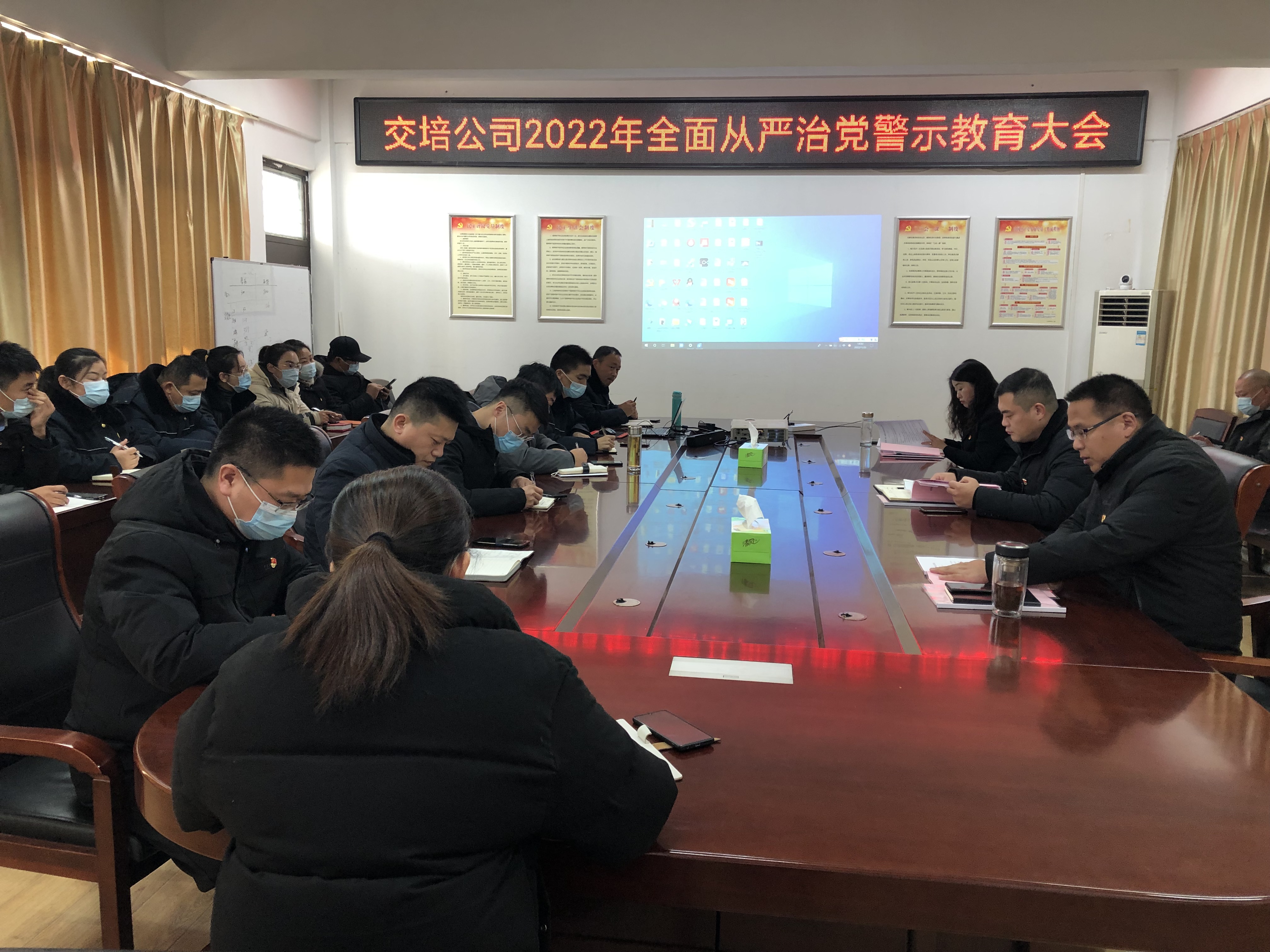 1月20日下午,交培公司召开了2022年全面从严治党警示教育大会,公司领导班子、中层干部及关键岗位人员到场参加会议。