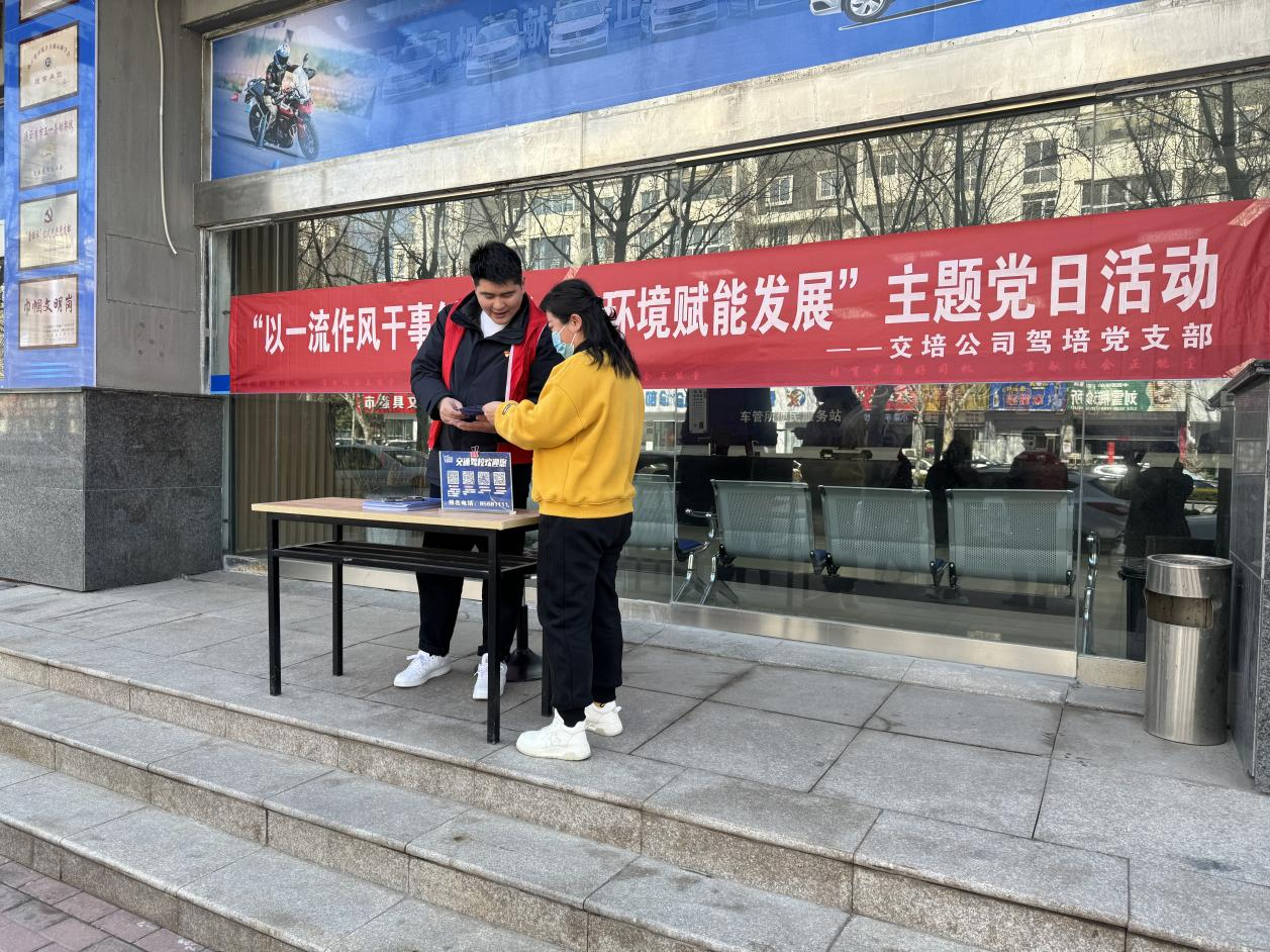 为贯彻落实市委组织部《关于开展“以一流作风干事创业 用一流环境赋能发展”主题党日活动的通知》要求,助力打造良好营商环境,全力攻坚推进“优化营商环境提升年”重点任务,结合3.15国际消费者权益日,交培公司驾培党支部开展“以一流作风干事创业 用一流环境赋能发展”主题党日活动。