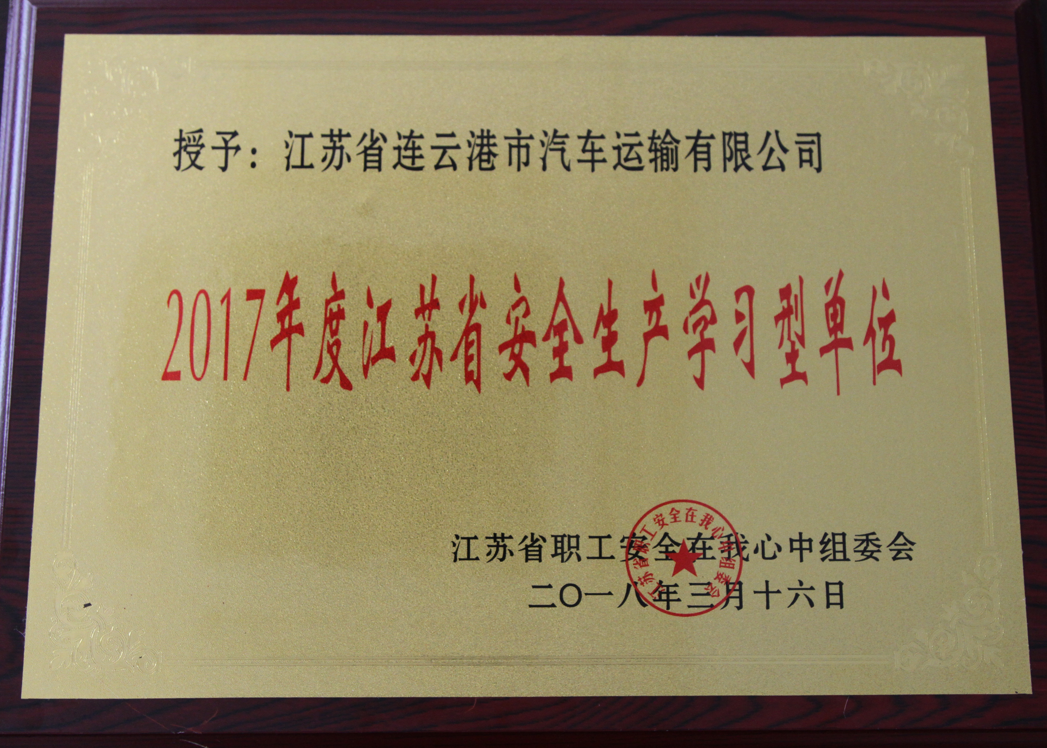 为全面贯彻国家安全生产法律法规,落实安全生产主体责任,防范安全生产事故,汽车公司积极组织开展各类安全生产教育培训,有力地提高了全员安全生产素质和安全生产意识,夯实了安全生产基础。经江苏省总工会职工安全在我心中组委会筛选,汽车公司凭借优秀的安全生产成绩和经验,被评为“2017年度江苏省安全生产学习型单位”。公司安机处处长包明良被评为“2017年度江苏省安全生产学习型个人”。
