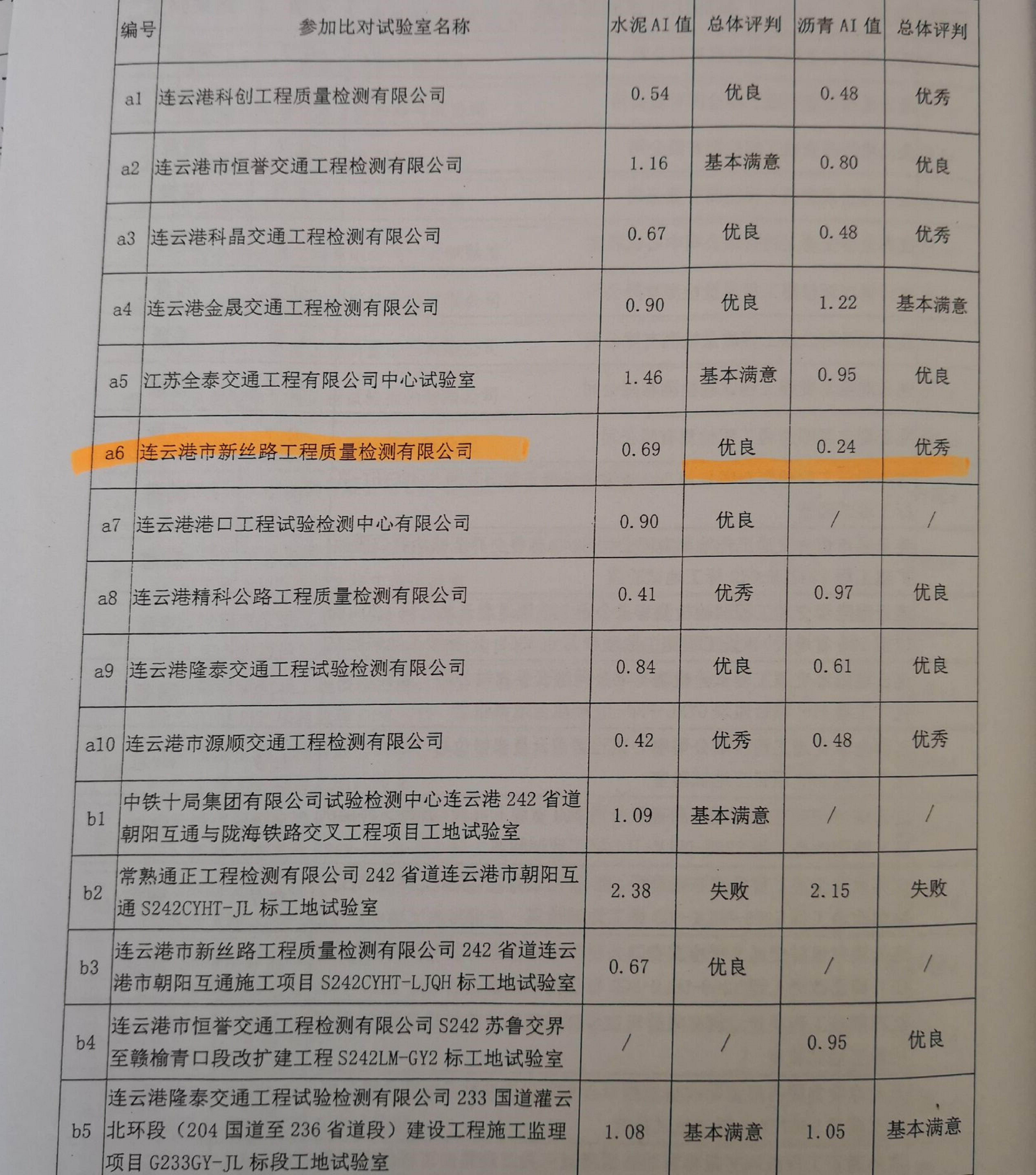 参加此次活动的有全市所有取得公路、水运工程丙级及以上资质的试验检测机构10家及参与全市交通工程项目建设的工地试验室22家,共32家。参加试验室需要进行水泥和沥青两个项目共7个参数的比对。新丝路检测公司参与了此次比对活动。