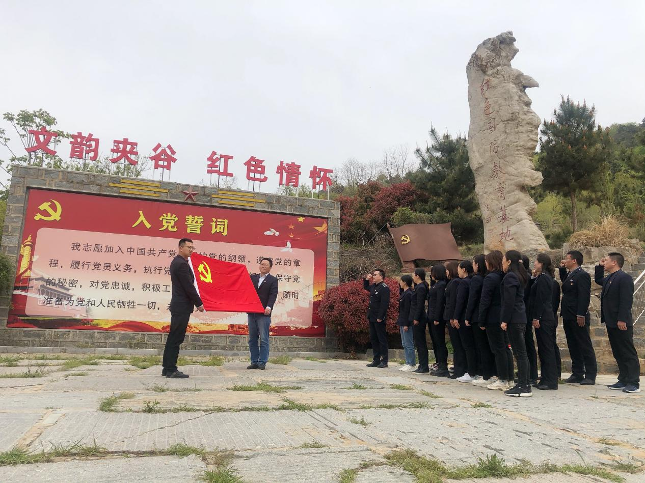 最后一站来到夹谷山国防洞,在夹谷山广场上,党员们佩戴党徽,面向党旗,庄严宣誓。在夹谷山国防洞内,大家感叹于敌我兵力、配备悬殊情况下,中国共产党以劣胜优、以弱胜强。这些胜利都离不开革命战士永不言败的革命精神和坚定的信念。