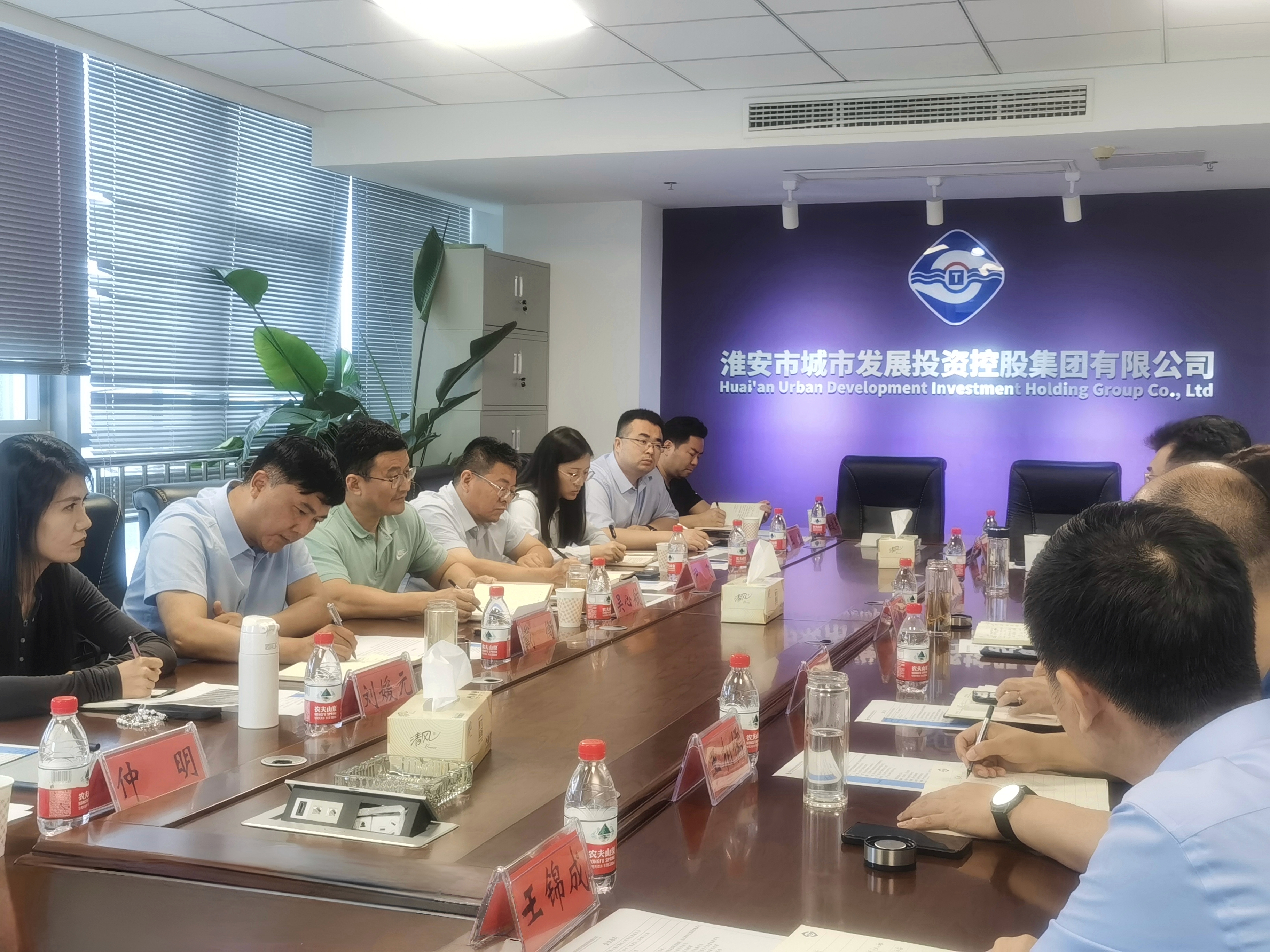 座谈中,淮安市城市发展投资控股集团副总经理张飚平详细介绍了集团概况、产业布局、生产经营、水资源利用效益评估等详细情况,双方围绕水利资源现状、水利集团组建需求、水利集团组建可行性分析等方面进行深入交流。