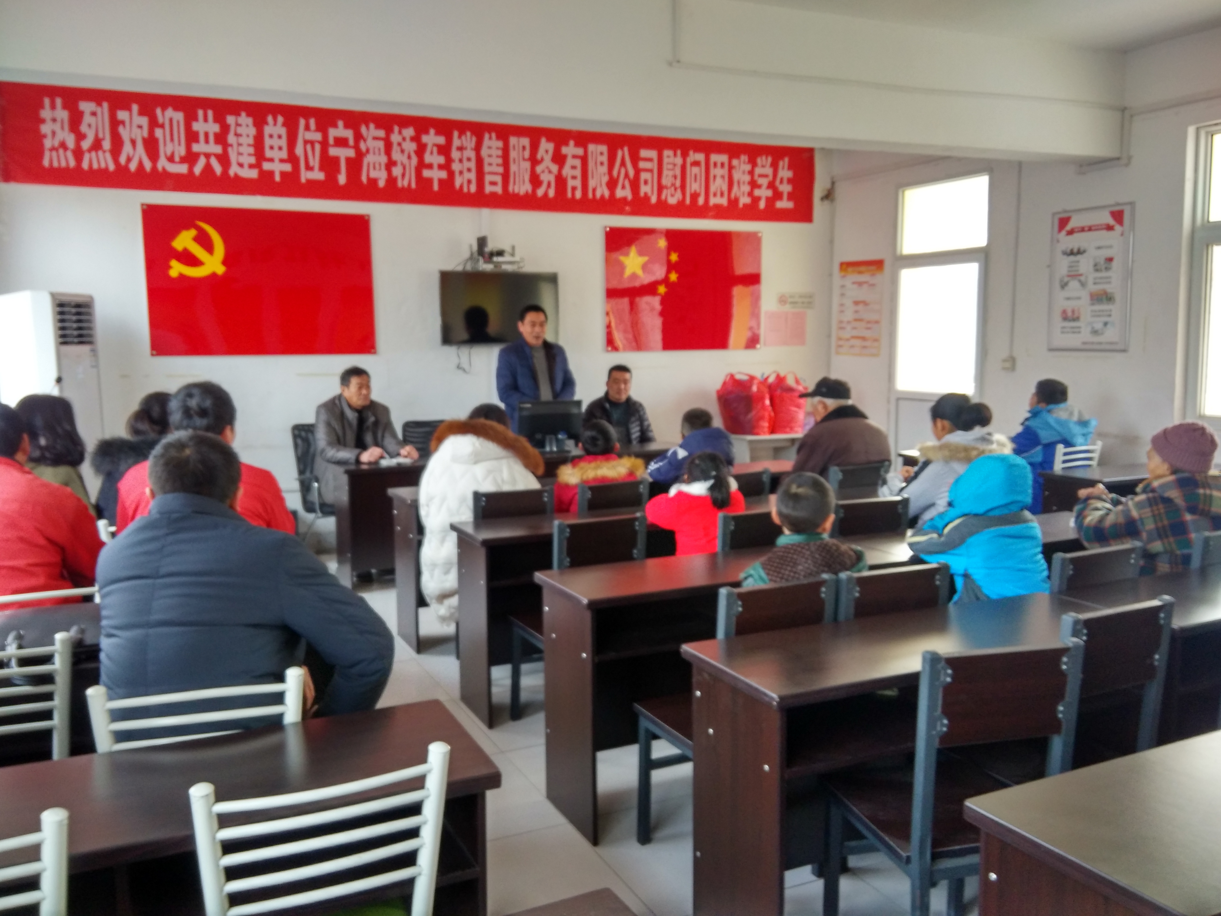 虽天气寒冷,但小村村委会的领导早已等候在大门口。在村委会领导的引导下,助贫小组来到会议室。此时,会议室内助贫儿童和他们的家长已经就坐。在张景万村长热情洋溢的讲话中,助贫活动正式拉开序幕。捐助活动中,公司助贫小组分别对村里11名贫苦儿童发放了学习用品和助学金,并要求孩子们认真学习,克服困难,树立积极的人生观和价值观,努力成长为对社会有用的人。