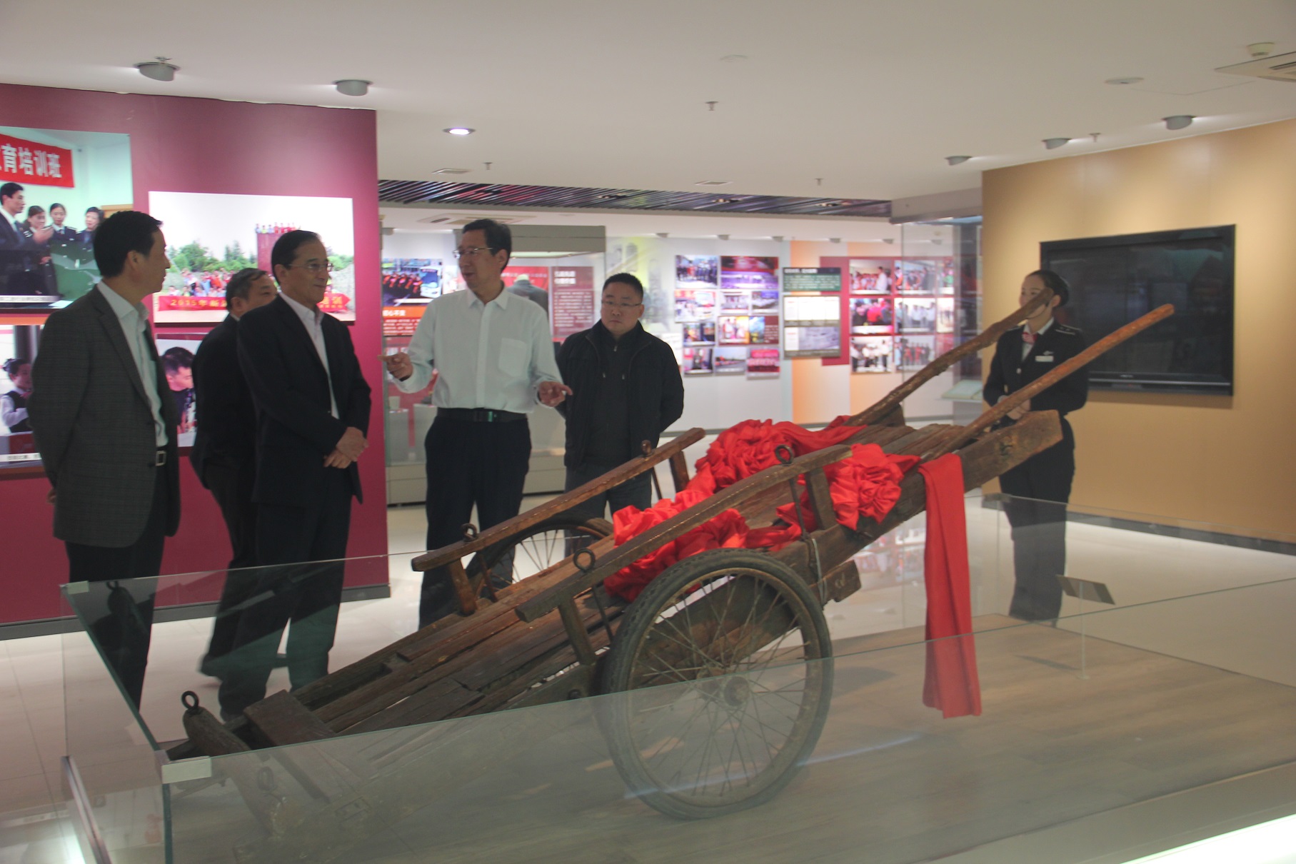 跟随讲解员的步伐,江天汽运集团一行先后了解了“雷锋车”的诞生、发展与创新,驻足电视机前,收看了“永不褪色的旗帜”主题晚会视频。透过旧照片与老物件,聆听一段段感人事迹;置身平板车前感受老一辈“雷锋车”手的朴实与担当。