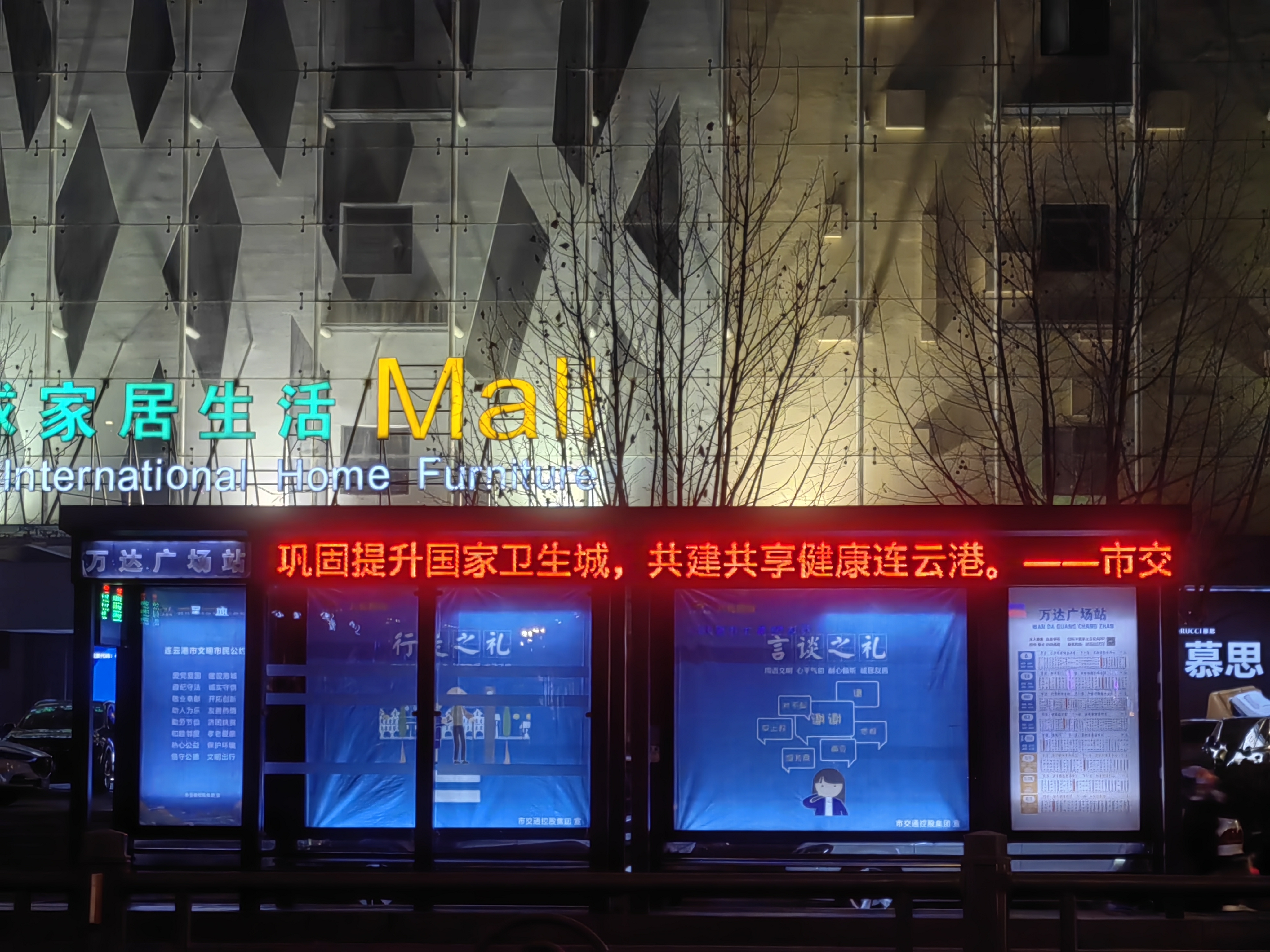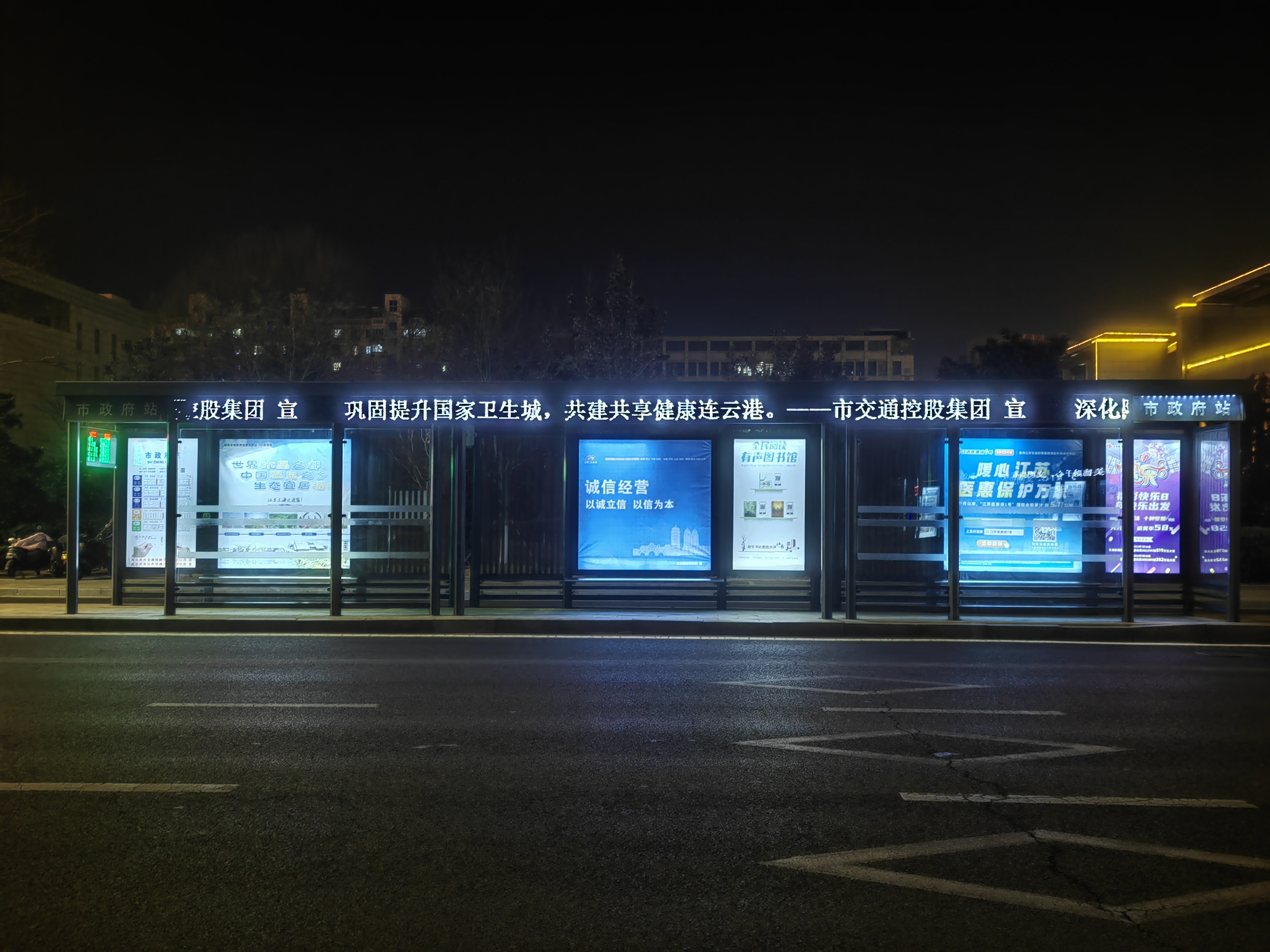 全市400余座公交站亭作为人流密集区域,成为此次社会面宣传的任务重点。政府下达的相关文件中指出,为确保强化宣传工作,“创卫”内容的可见度要广泛至城区主次干道,其中包括临街行人驻足大于2分钟的LED显示屏。交通集团充分发挥自身宣传优势,利用市区公交站亭的LED条屏等电子媒体,对本次创建卫生城市的口号标语进行全天滚动播放。相关标语的内容为:“巩固提升国家卫生城,共建共享健康连云港”。