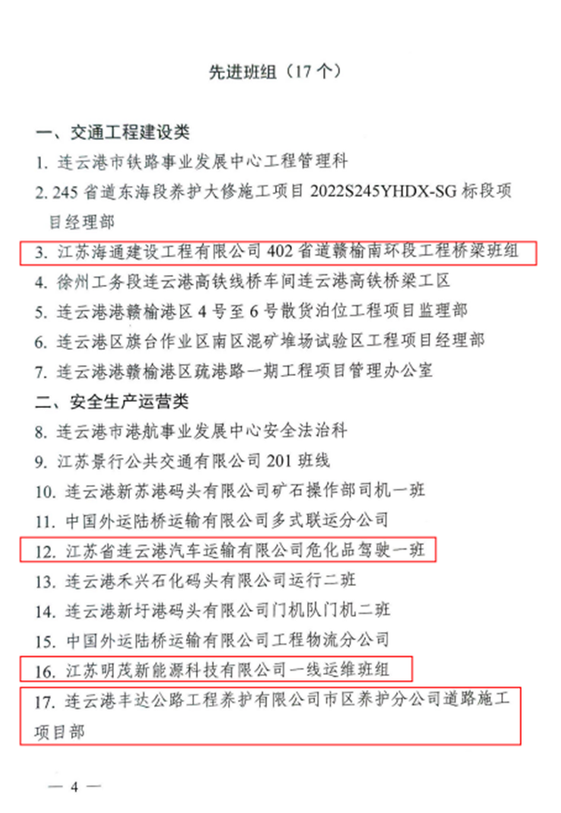 近日,从市总工会、市交通运输局传来喜讯,集团权属公交集团公交事业一部荣获2022年全市“奋战十四五、建功新时代”交通行业劳动竞赛先进集体,海建公司402省道赣榆南环段工程桥梁班组、汽车公司危化品驾驶一班、明茂新能源公司一线运维班组和丰达公司市区养护分公司道路施工项目部四个班组荣获先进班组,公交集团周卓文被评为先进个人,海建公司被评为优秀组织单位。