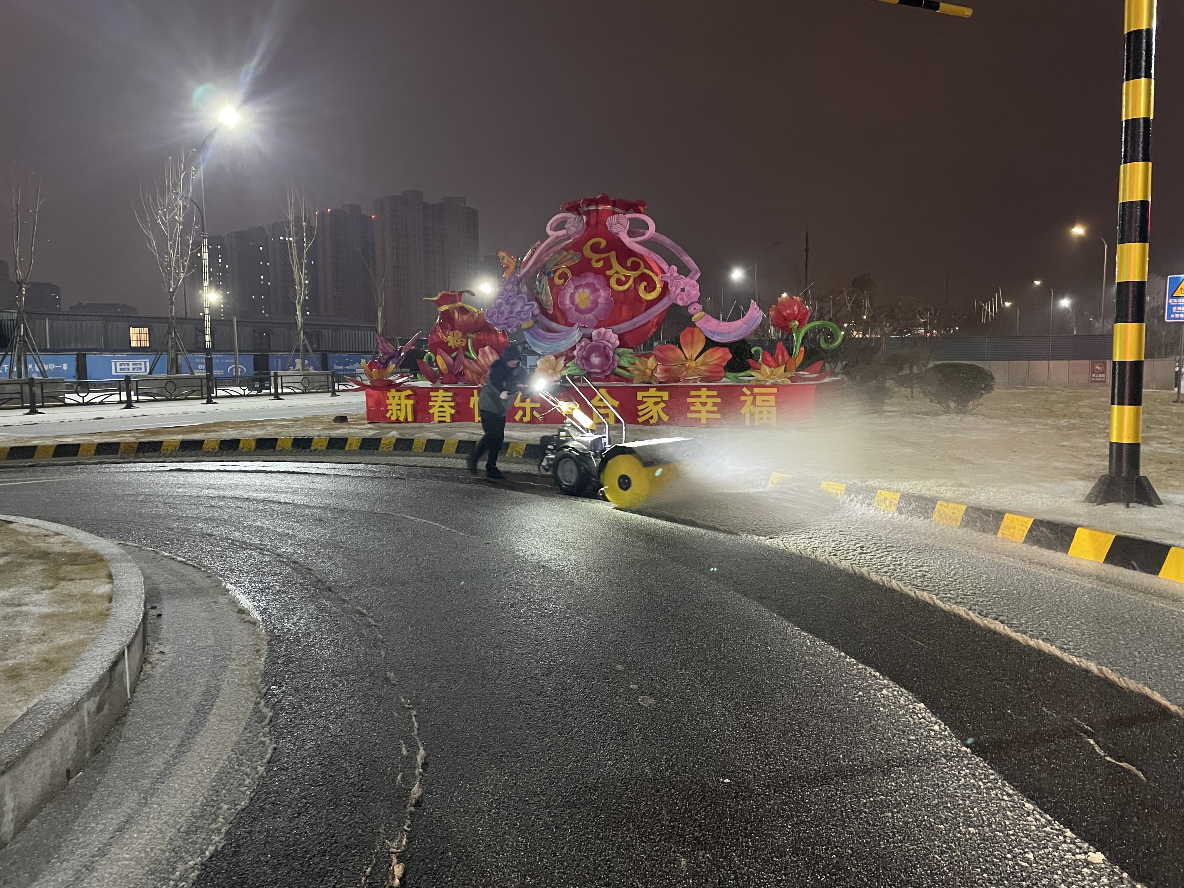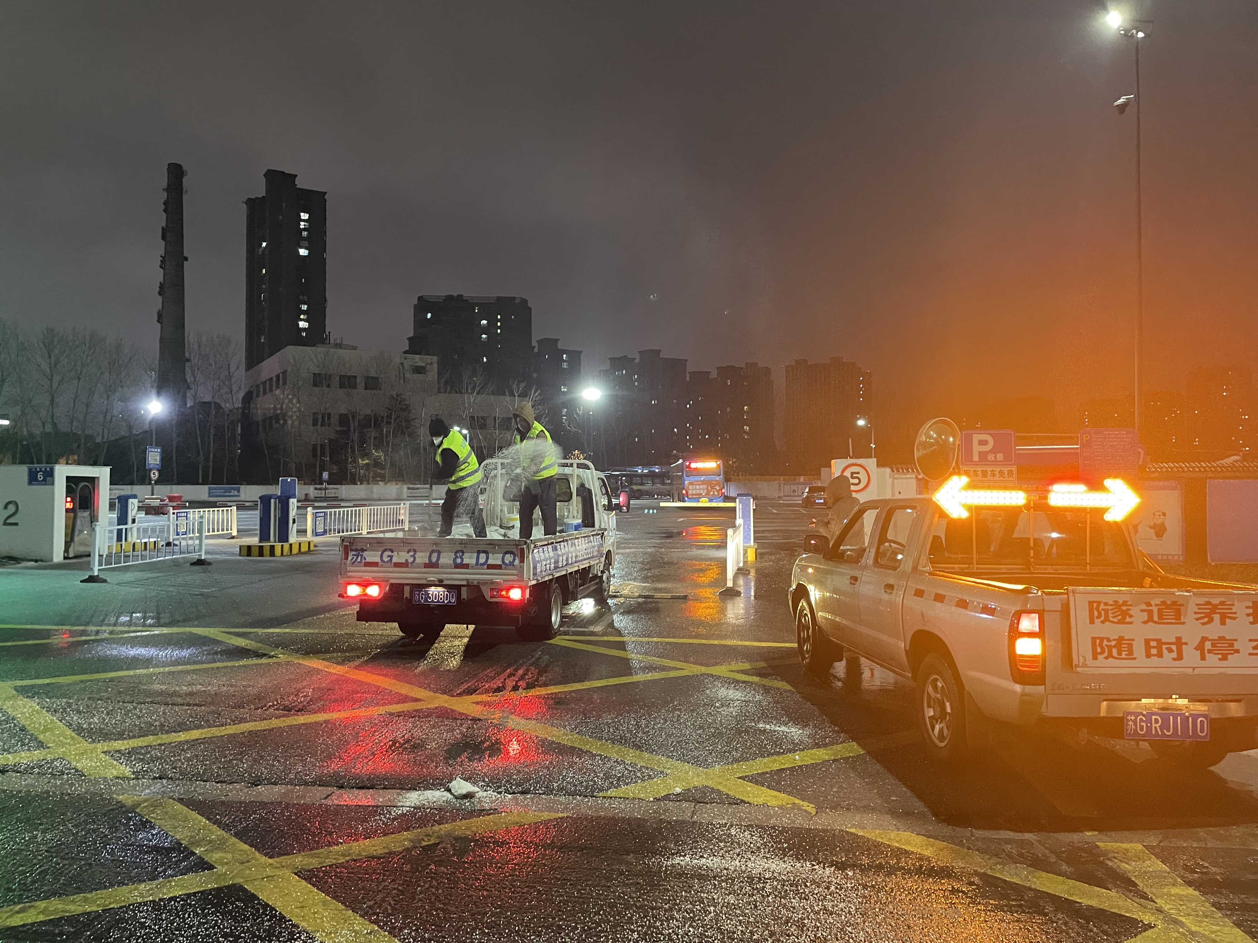 19日15时,交通集团建立了3支应急队伍,共储备融雪剂8吨,并及时补充;应急车辆、手推式抛洒机、手推车、除雪机、铁锹、扫把等大量工具齐上阵。随着天气变化,交通集团于19日21时启动冬季除雪防滑应急处置预案,一支由18人组成的融雪除冰应急小组迅速行动,冒冻雨开始逐步分段在出入口、人行通道、停车场出入口处等关键区域分段抛洒融雪剂,有效防止了道路结冰,确保了市民旅客的出行安全。20日,融雪除冰应急队伍增至35人,除雪设备、应急车辆数量翻倍,综合客运枢纽现场办全体干部职工24小时奋战一线,全域抛洒融雪剂5次,使用融雪剂总量达12吨。连夜的融雪除冰保障了连云港站早班高铁列车旅客的出行安全。