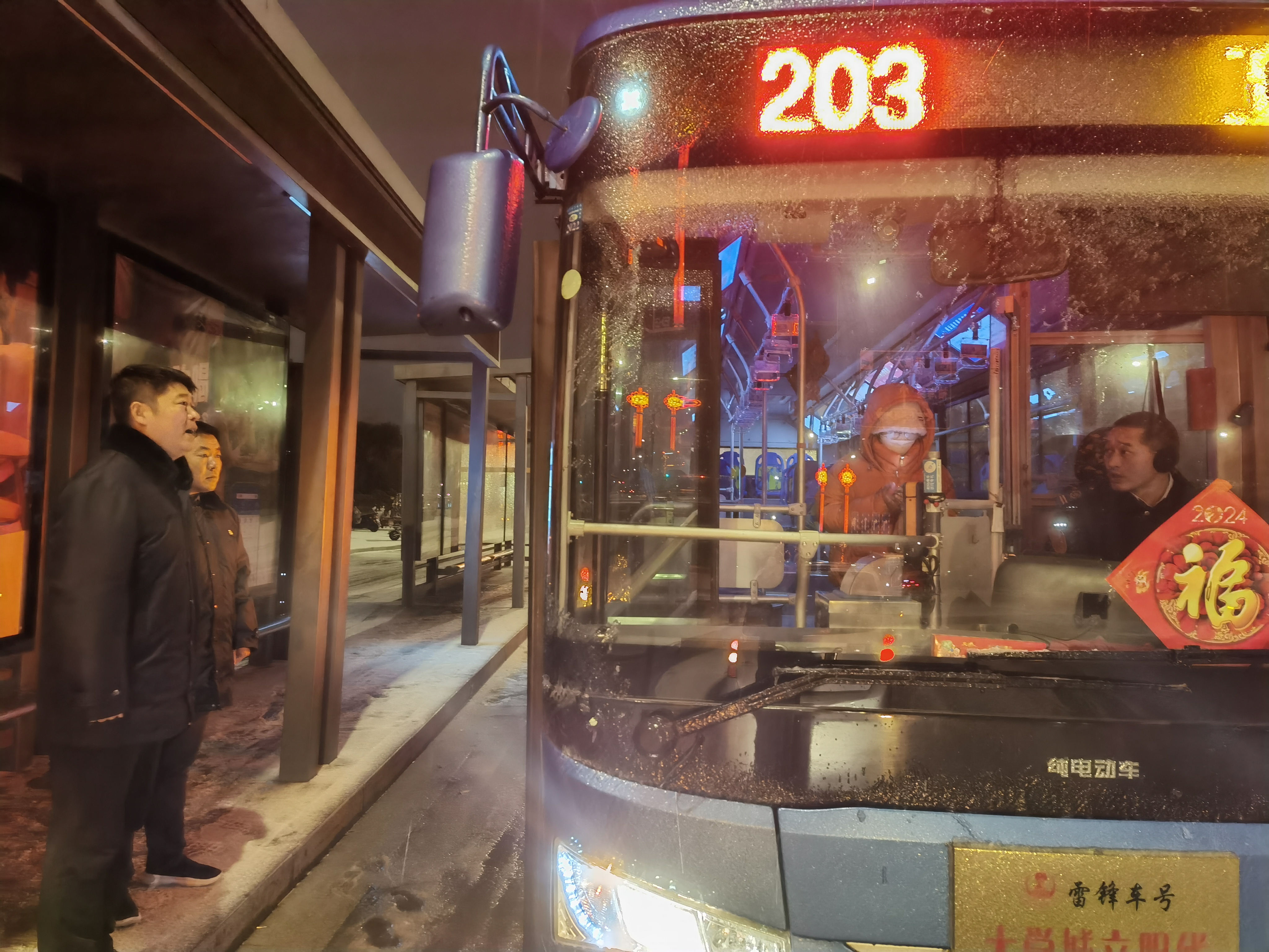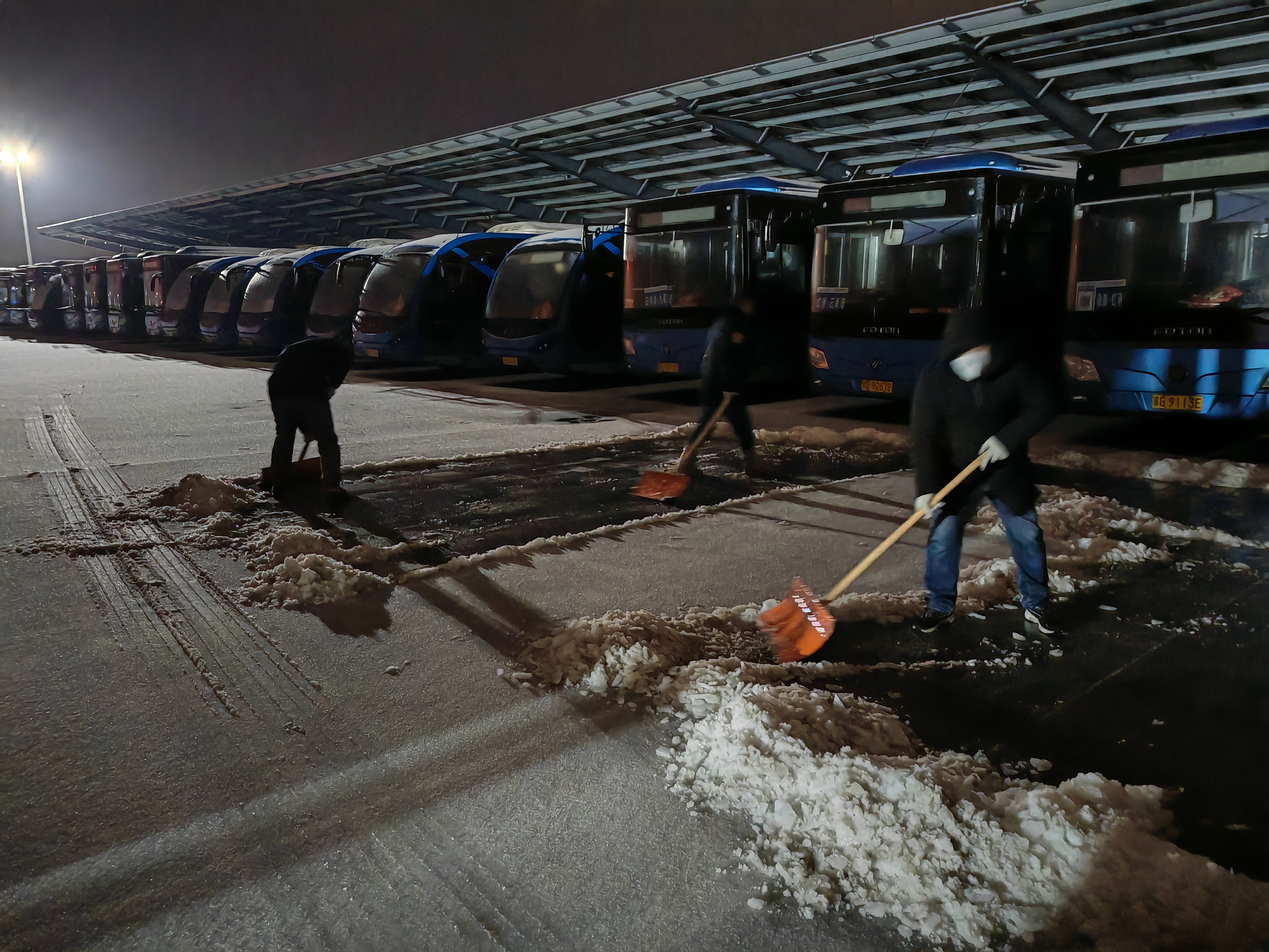 一是高度重视,靠前指挥,成立扫雪除冰临时指挥部,集团领导班子成员、安全、机务、运营部门负责人、各事业部管理人员下沉一线,现场调度、连夜奋战,时刻关注路况和天气情况。二是严格落实24小时值班制度,各场站做好融雪剂、除雪铲、扫雪工具等应急物资储备,驾驶员、站务员提前到岗,在发车前及时清理场站冰冻,为出行车辆打开安全通道,全力保障出行安全。三是加强车辆灯光、轮胎、刹车等部位的检查,要求驾驶员提前松手刹、轮胎后放垫木,储气筒放水,以防车辆结冰,特别关注防冻液的储备情况,确保车辆性能良好,能够正常运行。四是加大线路巡查力度,调度人员利用车载监控、微信群等平台,及时发送预警信息,加强安全交代,提示驾驶员“减速、控距、亮尾”,谨慎慢行,确保行车安全。五是做好车辆后勤保障,提前储备车辆维修配件,修理人员提前到各场站,保障首班车按时发车,应急保障人员及时上路抢修故障车辆,保障线路正常运营。