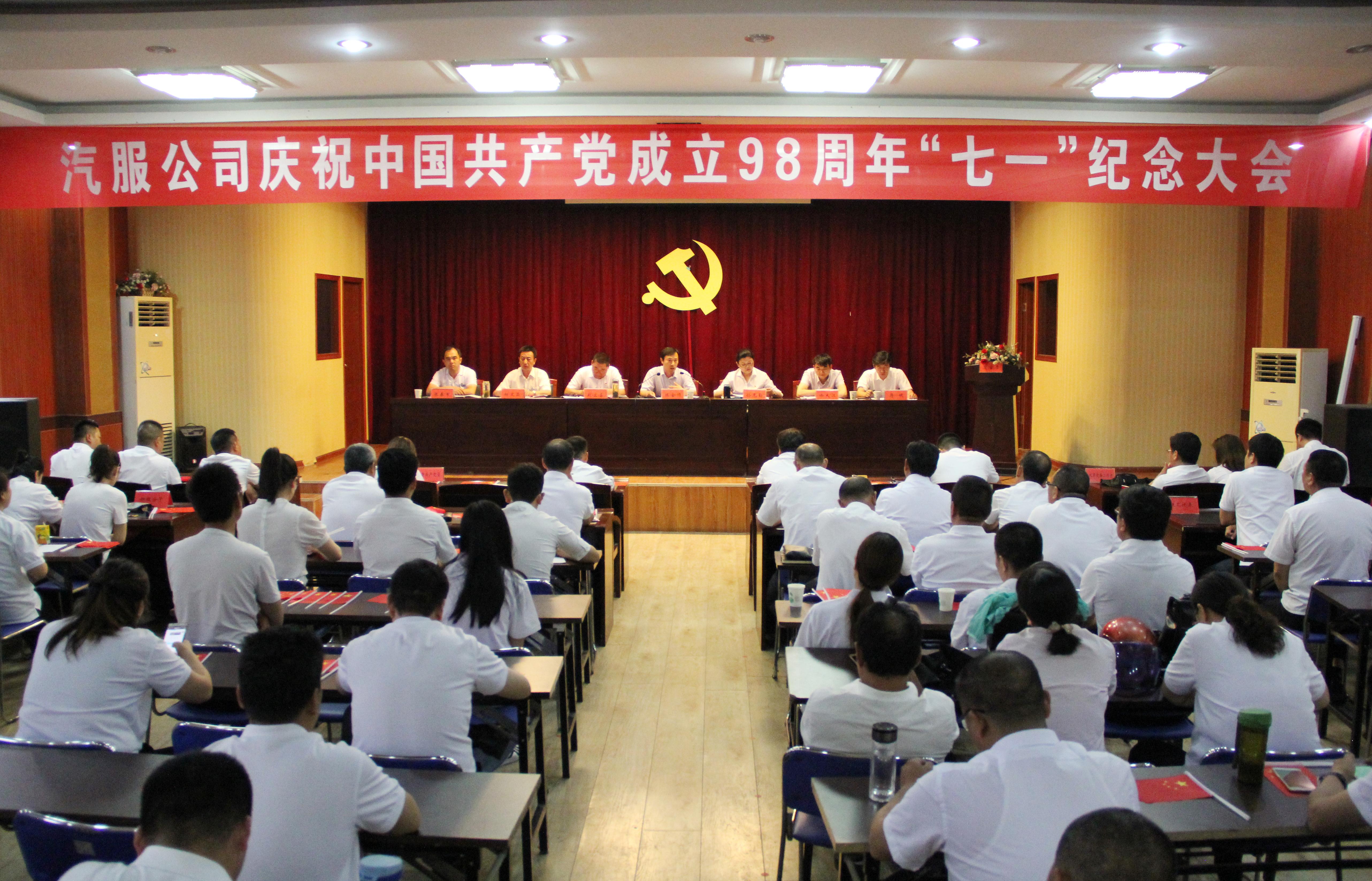为纪念中国共产党建党98周年,进一步激励广大基层党组织和共产党员发挥战斗堡垒和先锋模范作用,6月28日下午,汽服公司隆重召开庆祝建党98周年暨“七一”表彰大会,公司领导班子成员、权属单位中层干部、党员干部、入党积极分子、优秀大学生代表及部分职工代表共计120余人参会。集团党委副书记、汽服公司董事长陈金师及集团派驻第二纪检组长徐大江应邀参加了会议。会议由公司副总经理赵立喜同志主持。
