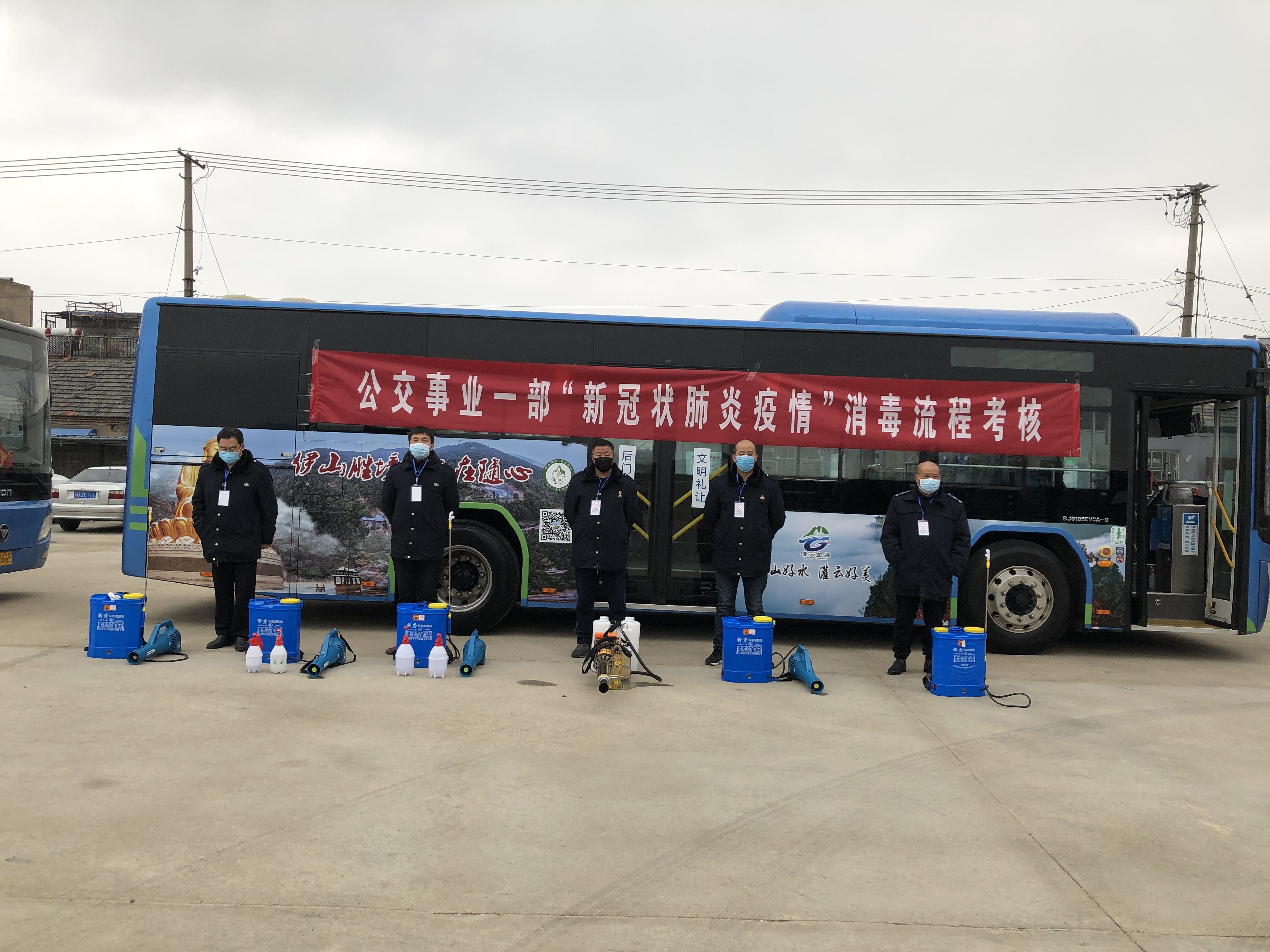 为了进一步做好“新型冠状病毒肺炎疫情”的防控工作,提高事业一部消毒人员的消毒水平,2020年2月29日下午14点30分,公交集团公交事业一部在植物油厂公交停车场开展“新型冠状病毒肺炎疫情”消毒流程考核竞赛,参加竞赛的人员包括:事业一部领导班子成员、分公司经理、安机经理等人员,公交集团安全保卫部部长于亮应邀观摩了本次活动。所有参加人员佩戴口罩,进入场站首先测量体温,并做好登记。