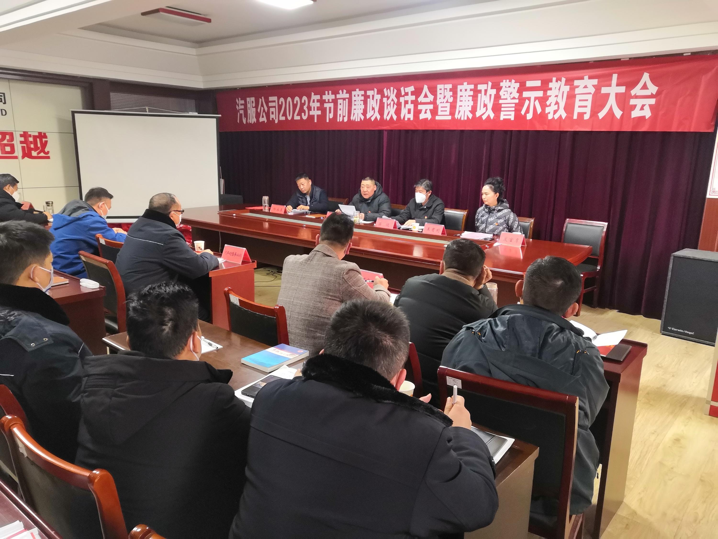 为全面贯彻落实党的二十大精神,坚定不移深入推进全面从严治党,推动党风廉政各项责任全面压实,1月17日下午,汽服公司召开节前廉政谈话会暨廉政警示教育大会,公司领导班子成员、中层干部共40余人参加会议。会议由汽服公司党委委员、总经理助理王有利主持。