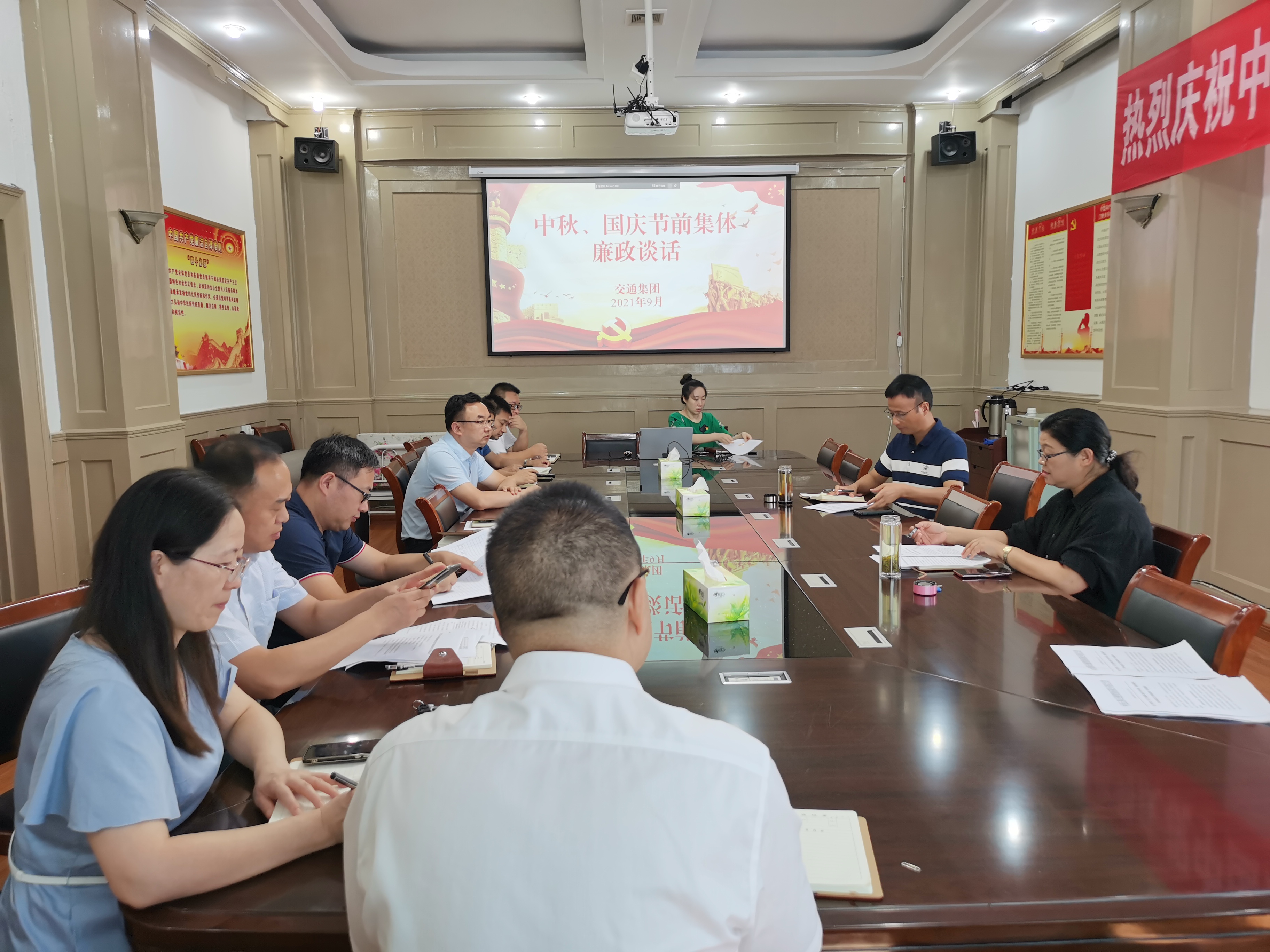 中秋、国庆节将至,为切实加强党风廉政建设,确保干部职工过一个廉洁、节俭、文明、和谐的节日,9月16日上午,交通集团召开2021年中秋国庆“两节”节前集体廉政谈话会议,会议由党支部书记孙克勤主持,总经理宣有金以及集团中层干部参加会议。