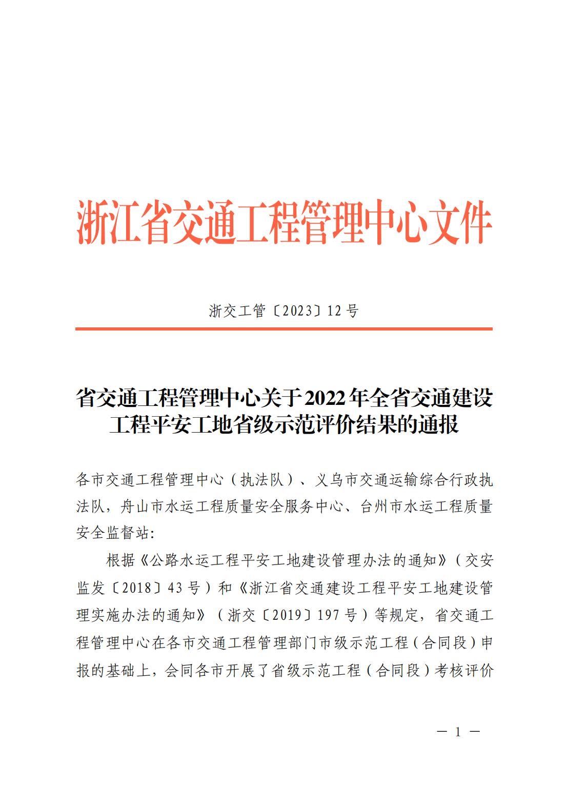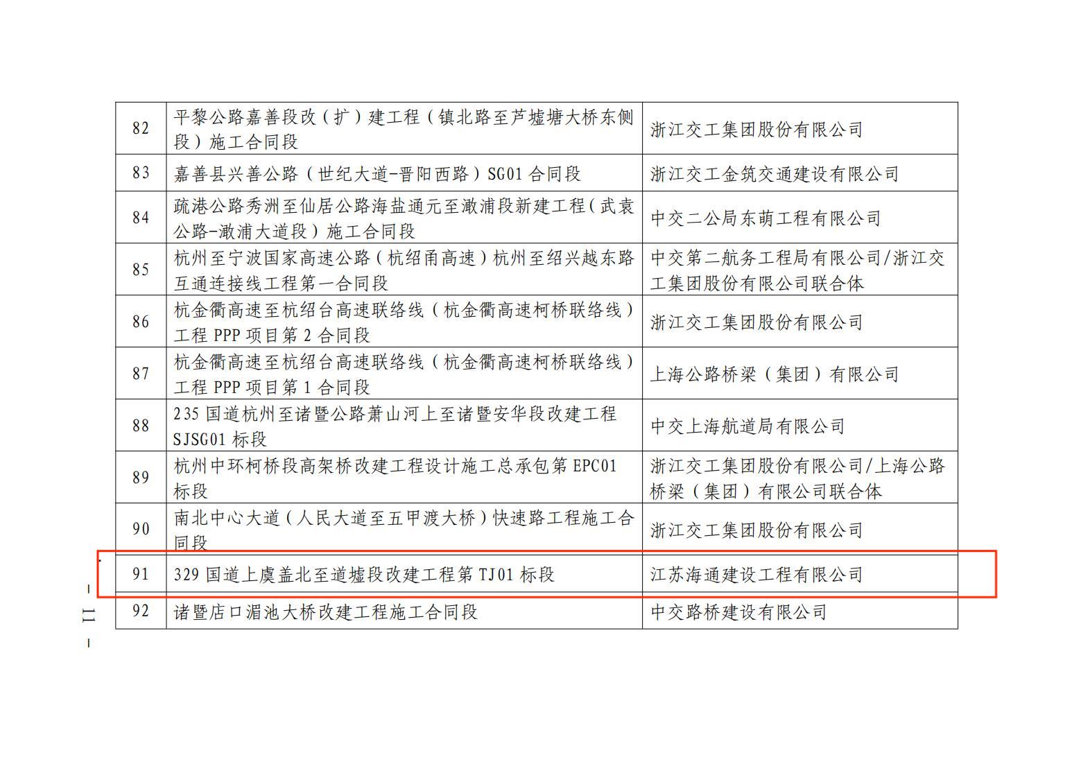 近日,从浙江省交通工程管理中心获讯,由江苏海建公司承建的329国道上虞盖北至道墟段改建工程第TJ01标荣获浙江省级“平安工地”示范合同段表彰