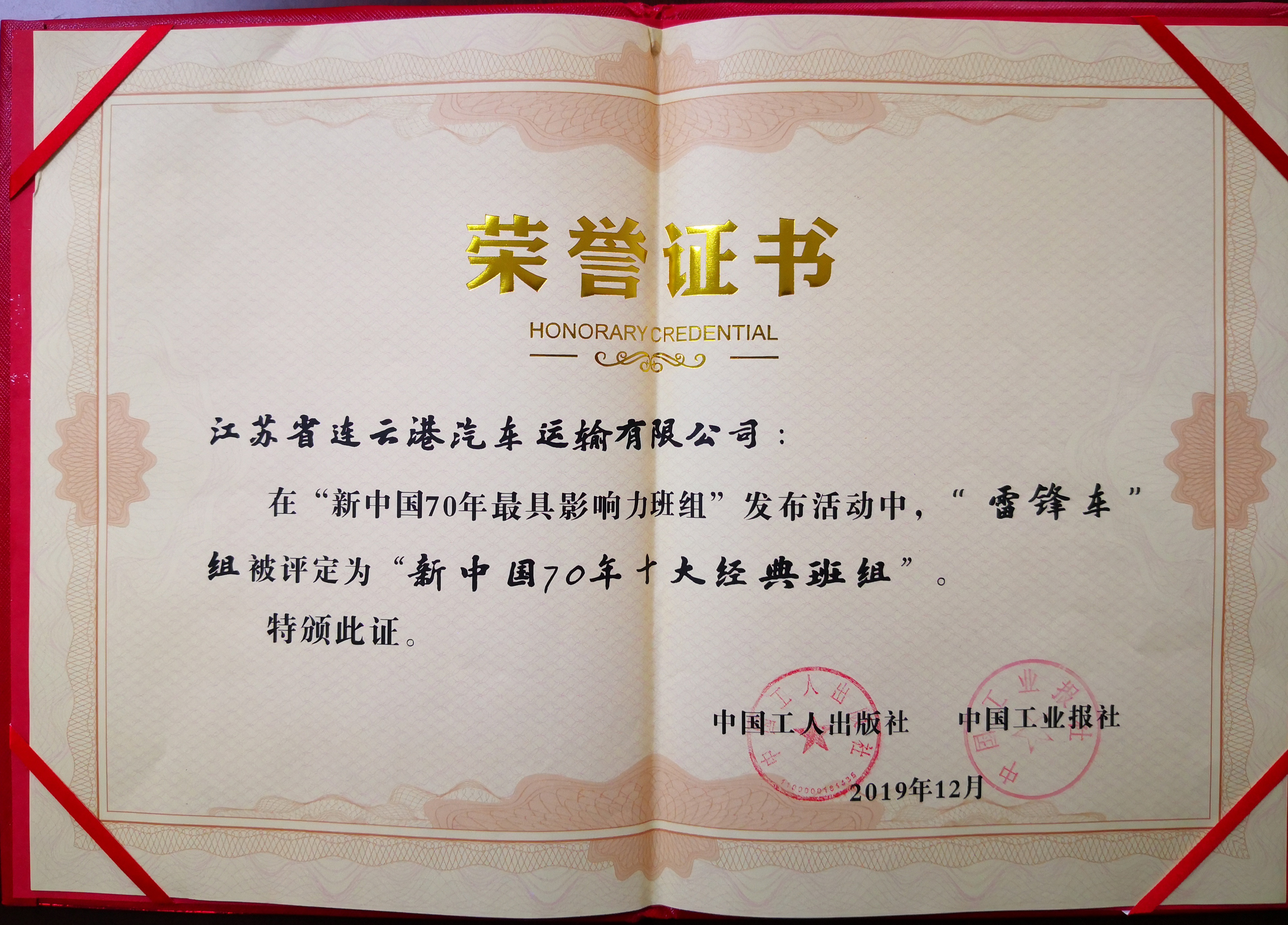 经过大国工匠、知名劳动模范、优秀班组长和专家学者组成的审核委员会评审,“雷锋车”组被评为“新中国70年十大经典班组”。