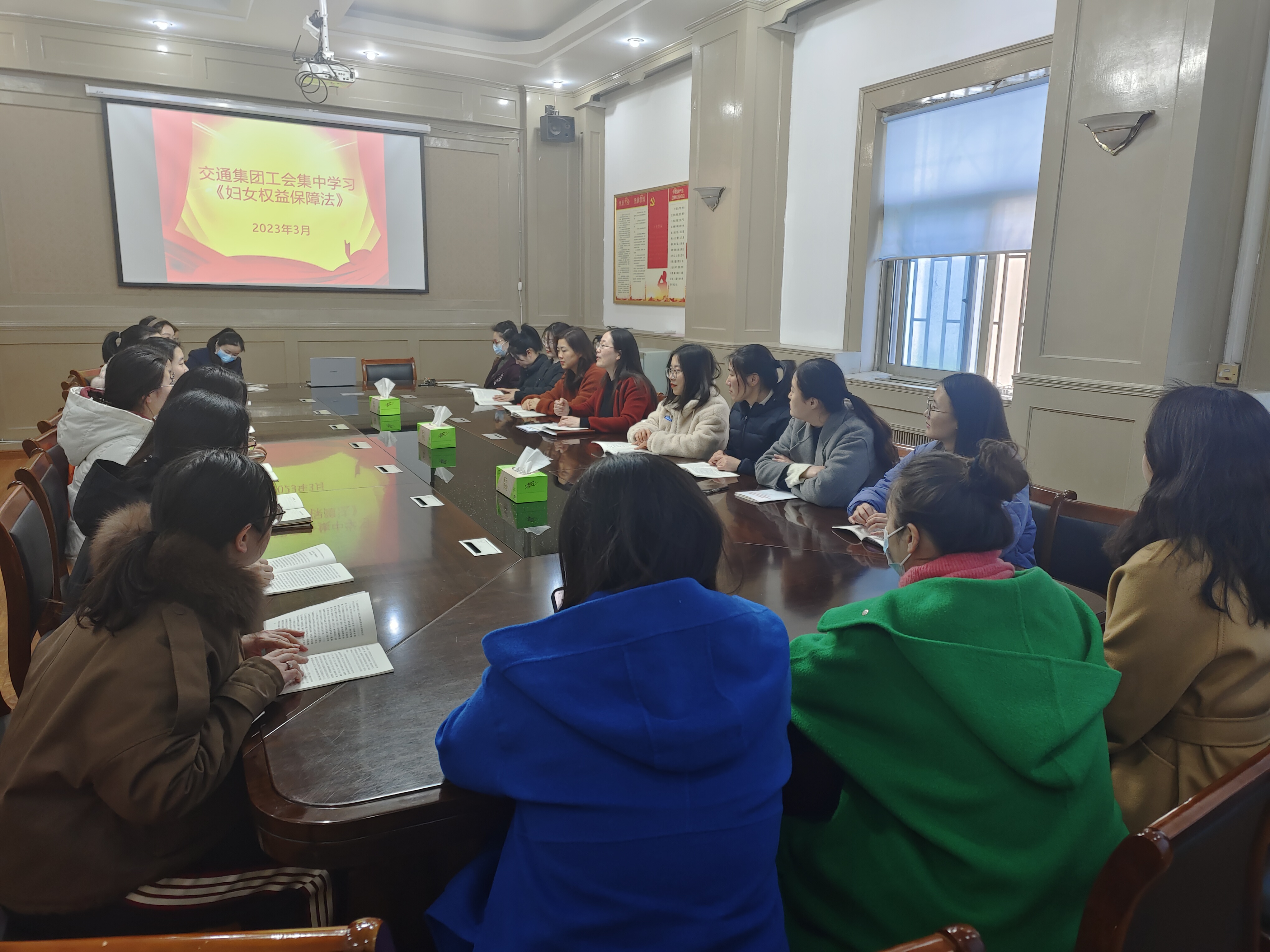 为深入贯彻落实习近平法治思想,强化妇女维权服务,积极营造关爱妇女氛围,“三八妇女节”到来之际,交通集团女工委组织妇女职工共同学习《中华人民共和国妇女权益保障法》等妇女权益保障法律法规。