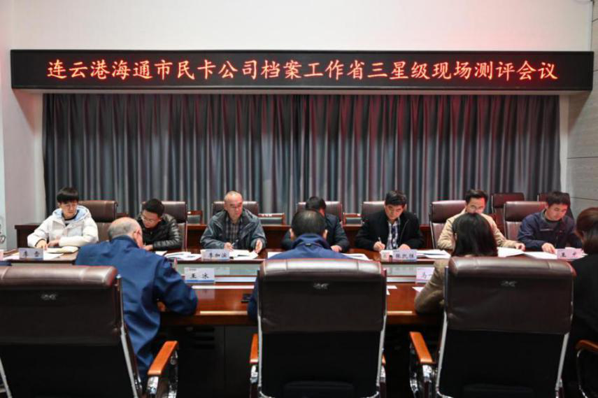 11月24日,由连云港市档案馆监督指导处处长卢正平,监督指导处二级主任科员张凯胜、徐继铭,监督指导处一级主任科员王龙,连云港市交通控股集团办公室副主任韩龙等有关专家组成的测评组,对市民卡公司档案工作申报“三星级”进行考核测评,市民卡公司总经理袁军、总经理助理马一骄、综合办公室负责人周贺等人参加现场测评会。