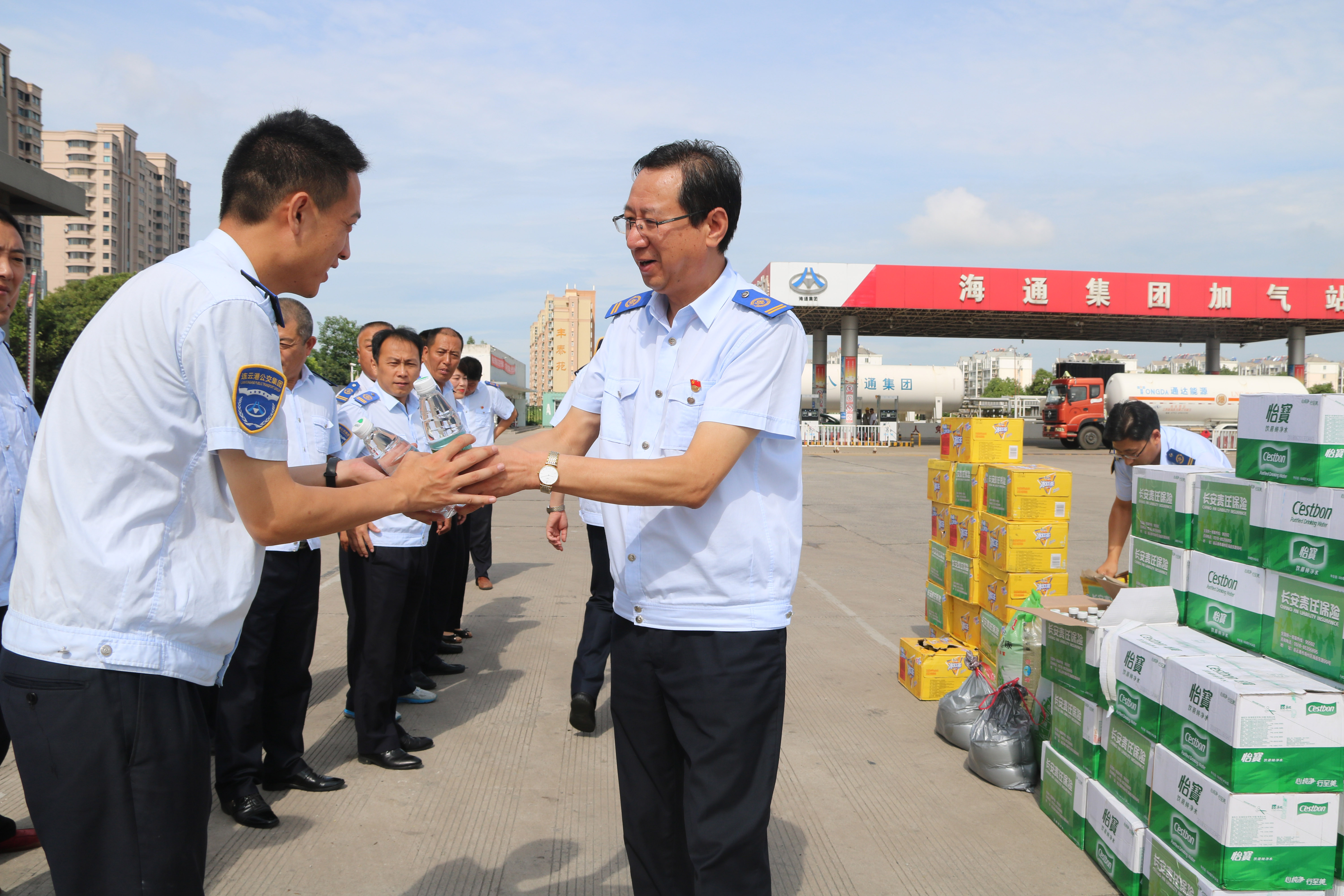自入夏以来,港城的天气节节攀高,持续发力的高温也给公交集团各条公交线上的驾驶员带来了巨大的挑战,公交集团党委书记、总经理刘佃华高度关注,多次强调要求做好高温天气下一线员工的后勤保障工作,权属单位务必要将一线员工的防暑降温工作放在重要位置,集团党委发放了绿豆、白糖、冰红茶、矿泉水等等防暑降温用品,让广大职工感受到夏日里的丝丝清凉和集团党委的深切关怀。
