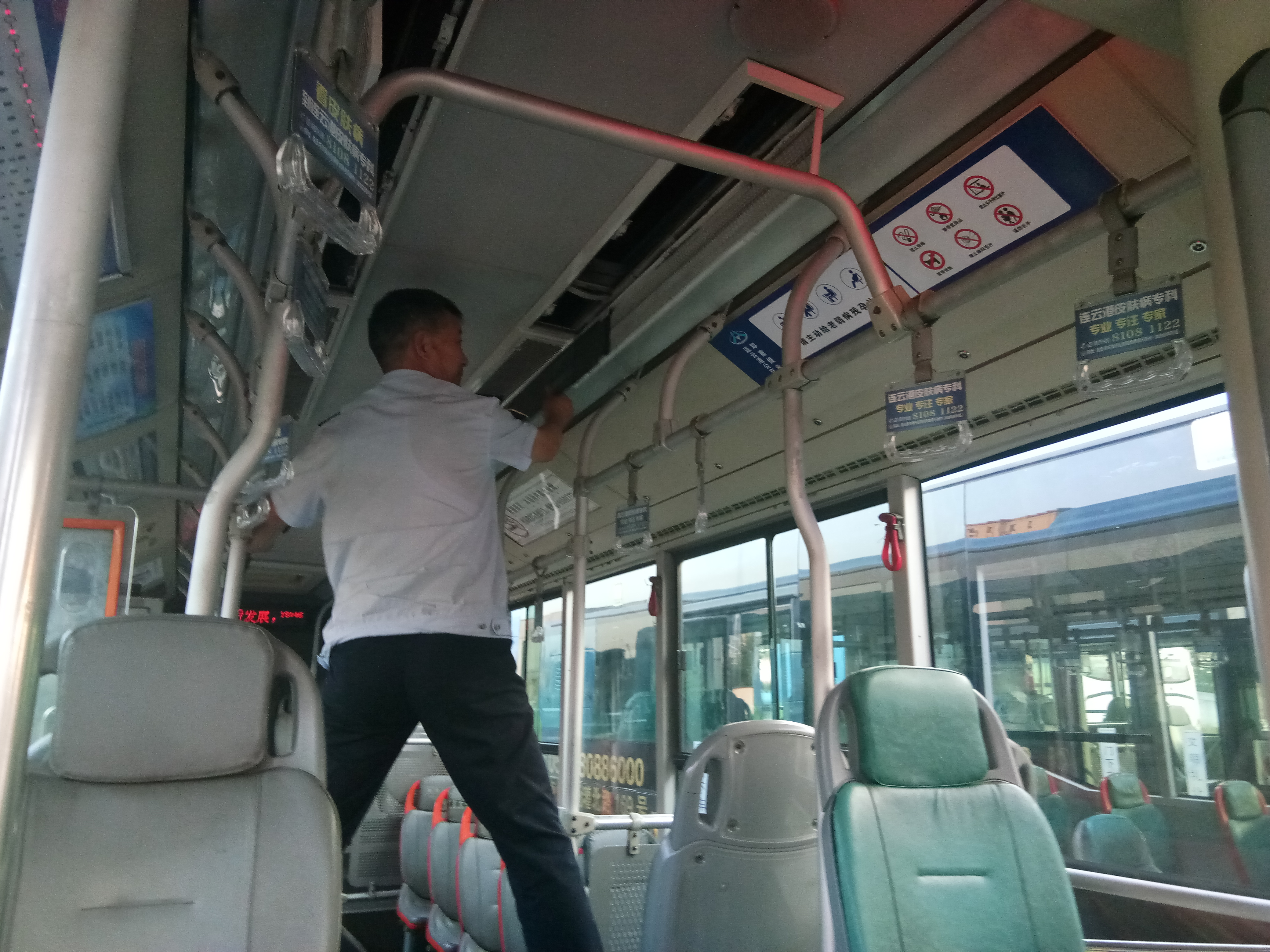 高温使用空调频繁,为确保乘客拥有一个干净、舒适的乘车环境,公交集团东部公司驾驶员师傅顶着高温清洗车辆卫生,驾驶员师傅们及时清洗空调滤网,确保车内空气清新。