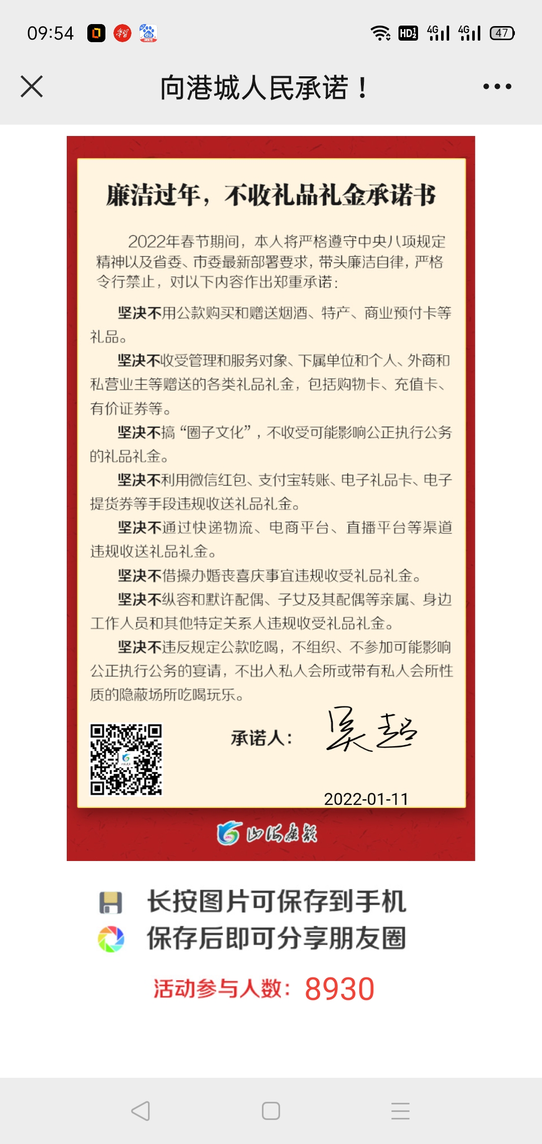为贯彻落实市纪委《关于严格落实 “春节不收礼品礼金” 要求》的通知精神,深入推进公司党风廉政建设、行风建设和反腐败工作,增强党员干部的廉洁自律意识,树立企业员工良好的社会形象,1月11日,海建公司纪委下发通知,组织公司全体党员干部签订《个人廉洁自律承诺书》、《廉洁过年,不收受礼品礼金承诺书》,同时《廉洁过年,不收受礼品礼金承诺书》的网上签订工作一并开展。