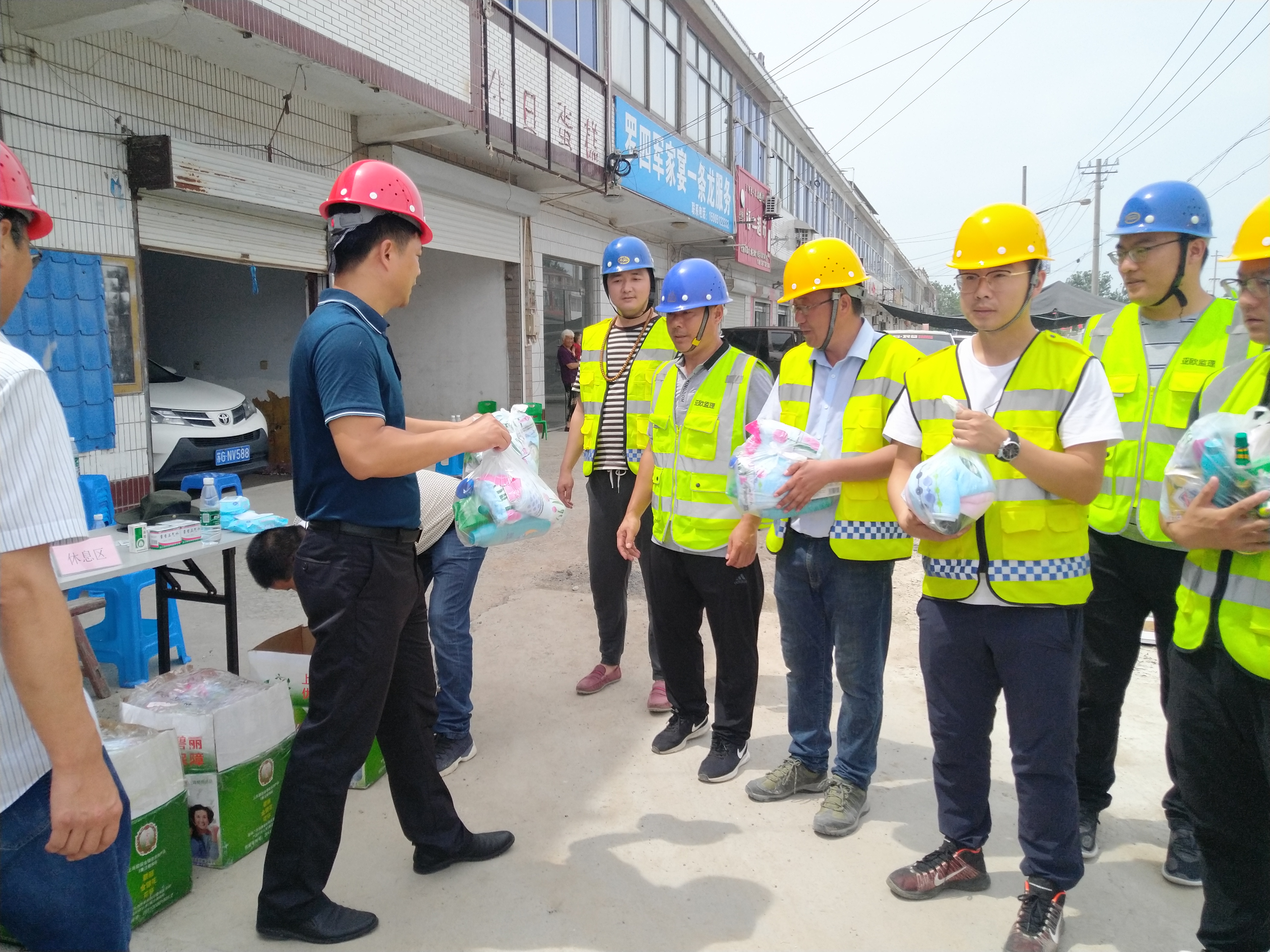 8月15日上午,灌南县交通运输局领导到337省道工程看望慰问坚守岗位的一线施工人员,为大家送来防暑物品。