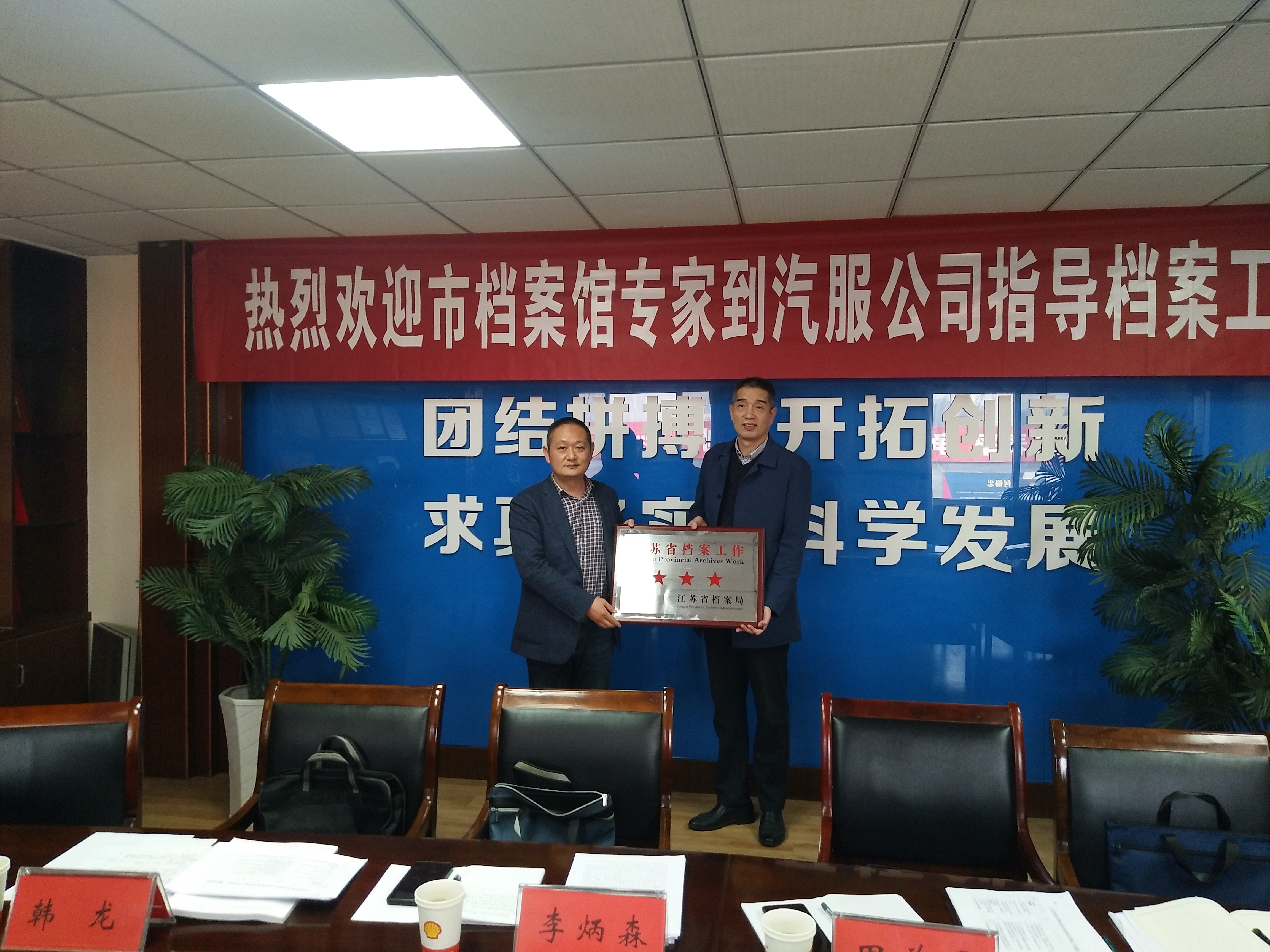 汽服公司档案分管领导对企业概况、档案工作省“三星级”创建情况、存在问题及努力方向四个方面作了详细介绍。测评组对照《江苏省机关团体企业事业单位档案工作规范》,分别从组织管理、基础业务、信息化建设、开发利用等四个方面对公司的档案工作进行检查和测评。经过测评组核定分数、形成测评反馈意见,最终汽服公司顺利通过,获评江苏省档案工作三星级单位。