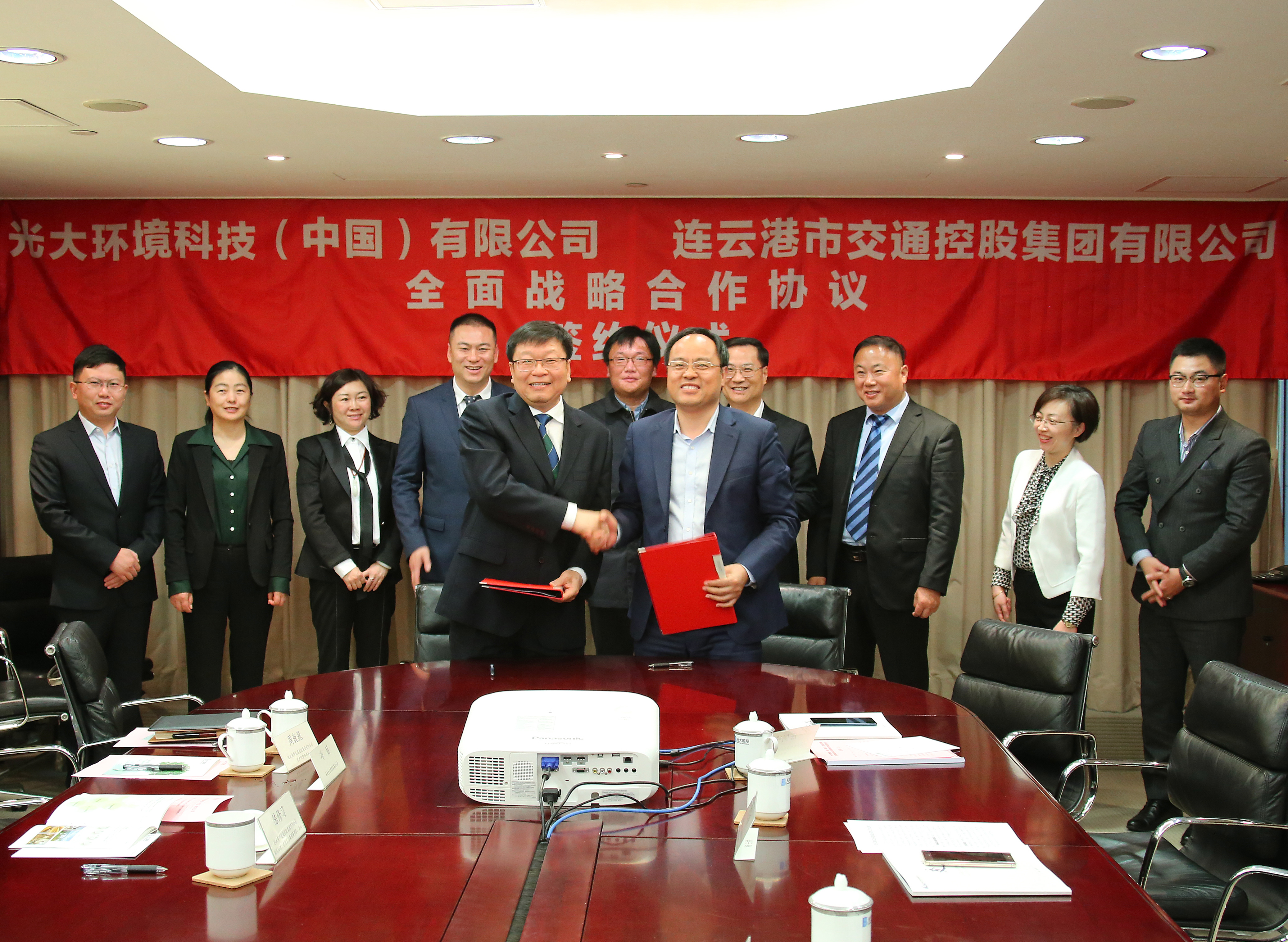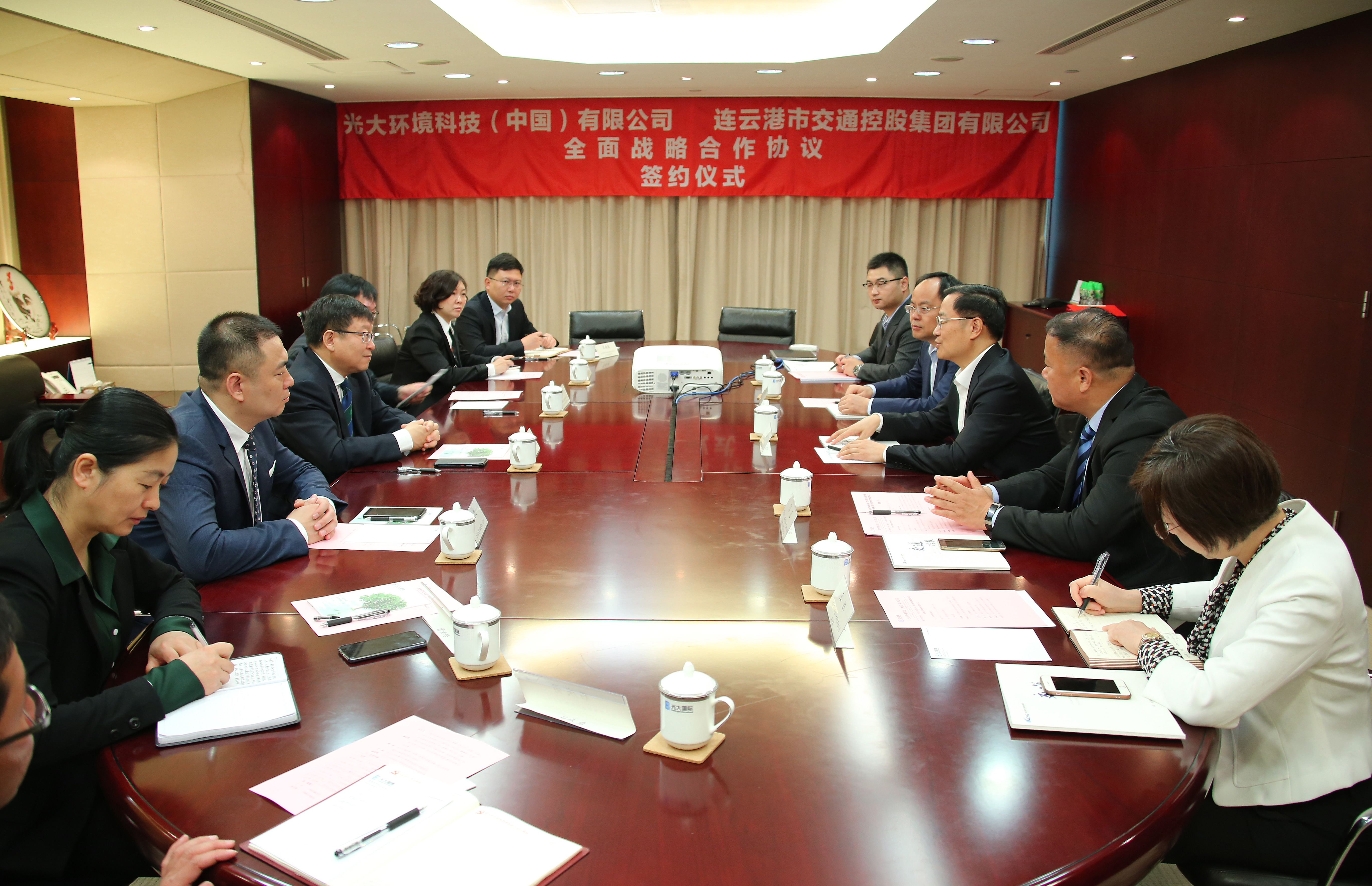 4月16日,集团与光大环境科技(中国)有限公司举行战略协议签约仪式。中国光大国际总裁王天义,中国光大国际副总经理、光大环境科技总裁杨仕桥,光大环境科技副总裁陈忠;集团董事长、党委书记刘永能,副总经理陈修习出席签约仪式;光大生态环境设计研究院、善能生态集团负责人参加签约仪式。
