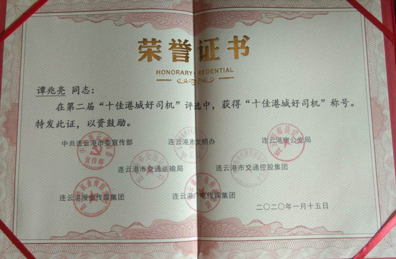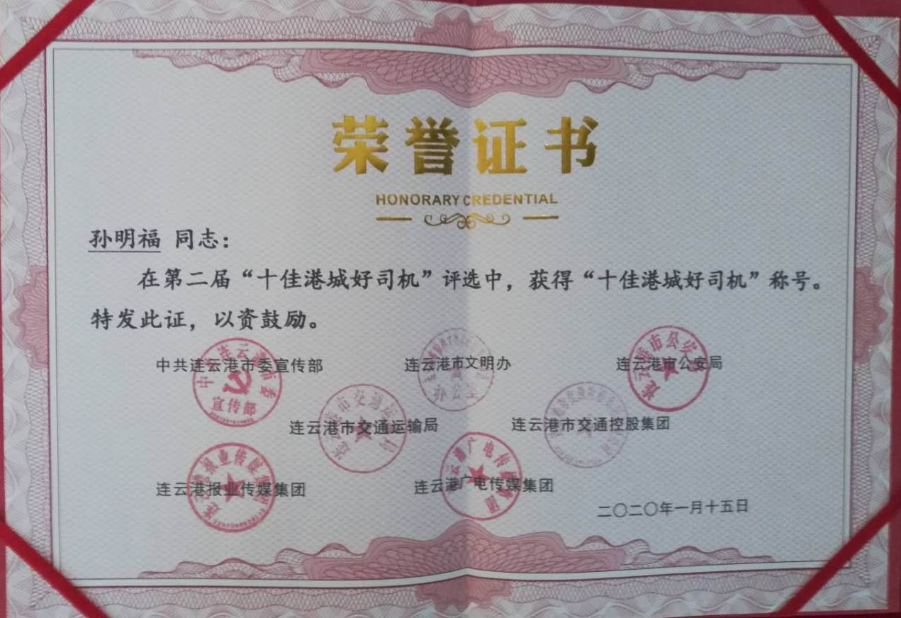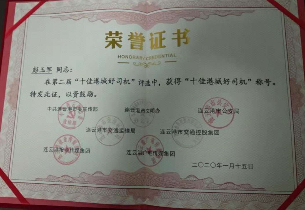 1月15日下午,在市广电影视城一号演播厅举办“文明·风景在路上”第二届港城“十佳好司机”暨第三届港城“十佳好交警”颁奖典礼,该活动由市委宣传部、市文明办、市公安局、市交通局、市交通控股集团、连云港报业传媒集团、连云港广电传媒集团共同主办。活动评出10名“十佳好司机”,其中汽服公司出租汽车事业部全福公司孙明福、谭兆亮,连汽快客公司彭玉军,公交集团公交20路李方毅等集团权属客运公司驾驶员荣获“十佳港城好司机”。