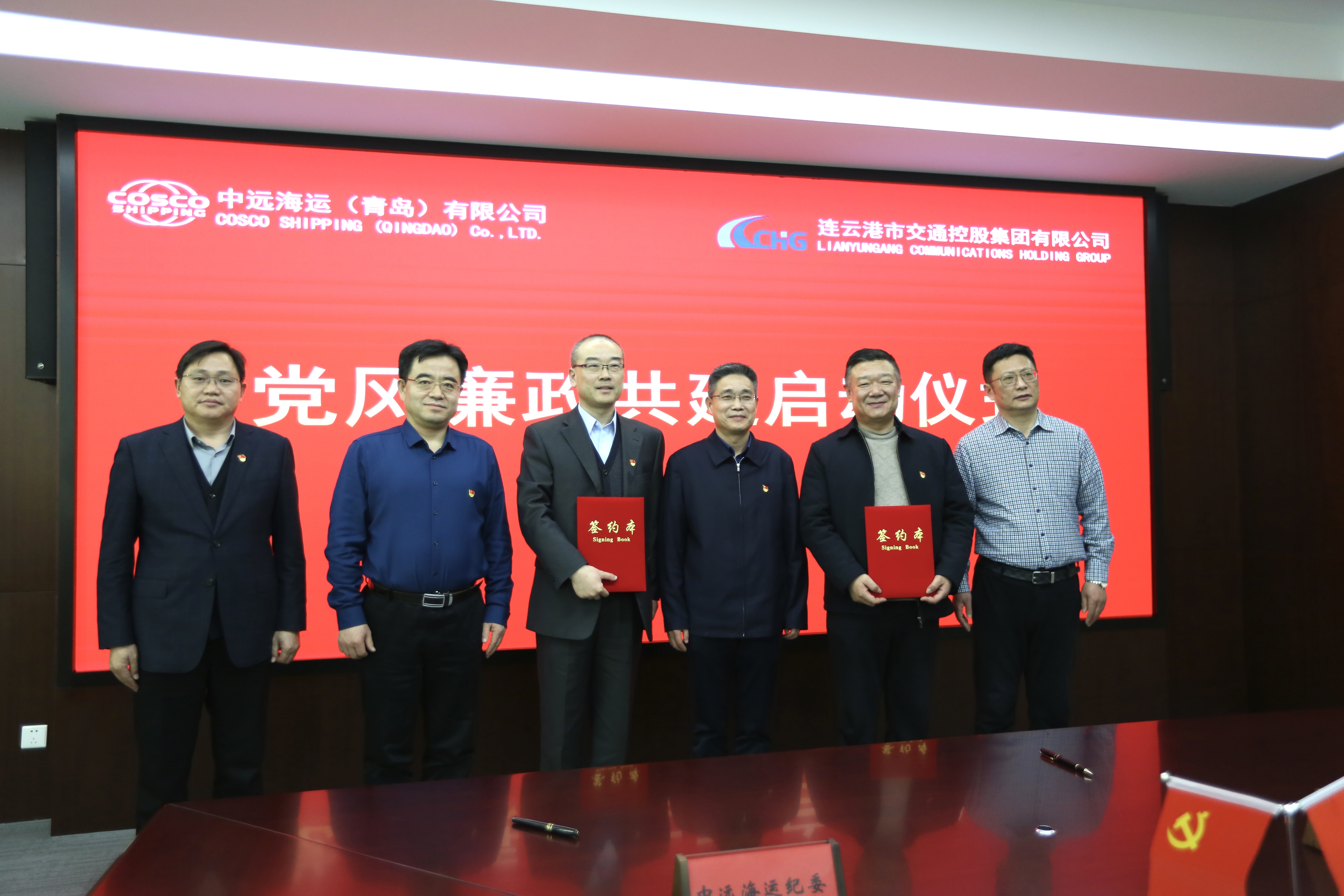 为进一步提升混改企业的监管质效,推动混改企业管理规范化、制度化、法治化,促进企业平稳健康持续运行,交通控股集团、派驻第二十一纪检监察组会同青岛中远海运共同探索“央地互动”新模式,力争实现资源共享、制度共建、风险共防。2月8日下午,青岛中远海运与交通控股集团在连云港中远海运特种装备制造有限公司举办“共建廉洁国企”启动仪式。青岛中远海运纪委书记刘家琰、副总经理杨贤军,交通控股集团总经理仲伟涛、总会计师张广兵,派驻第二十一纪检监察组组长张海等参加了仪式。青岛中远海运纪委与市纪委监委派驻第二十一纪检监察组签订了《党风廉政共建协议》。