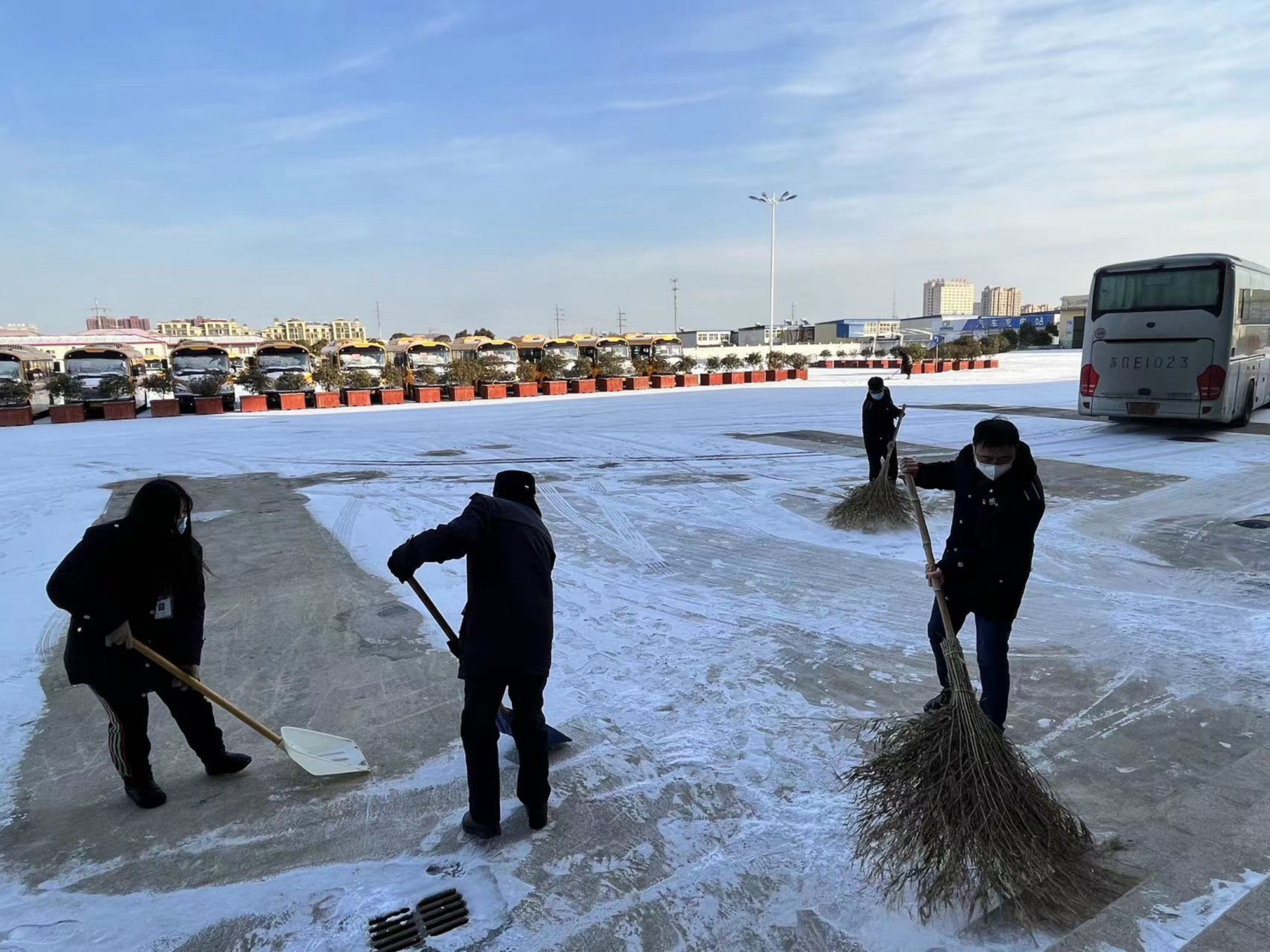 近日,连云港市受强冷空气影响,气温骤降,风雪交加,道路结冰,为保障客运车辆、职工旅客出行安全,最大程度消除安全隐患,1月15日,连汽灌云公司第一时间组织干部职工开展扫雪活动。