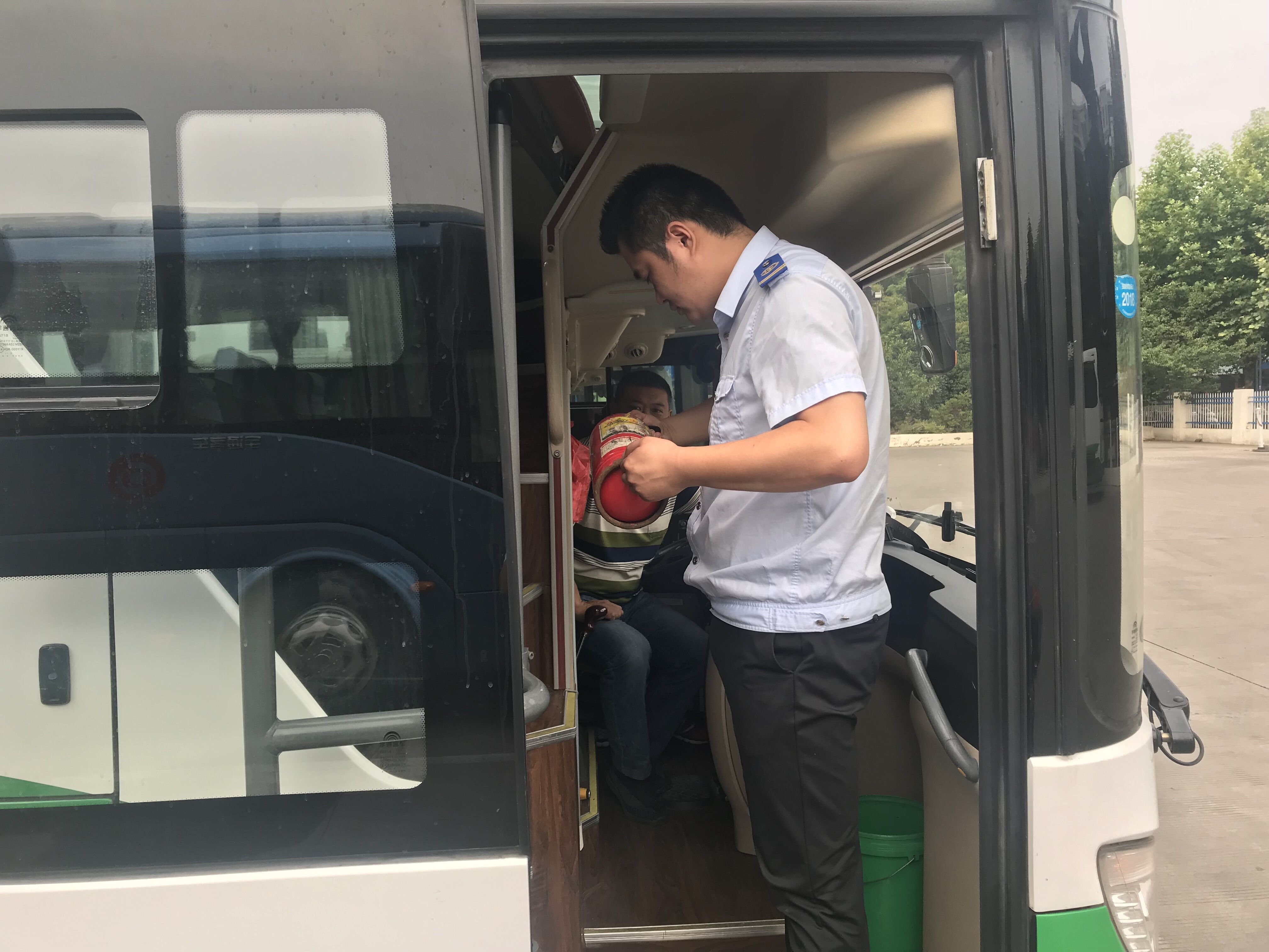 为了严防高温天气下各类火灾事故的发生,积极做好夏季安全生产各项工作,公交集团旅游公司高度重视,安机科长李昕哲积极对车辆进行年审和安全检查。他克服高温天气下的种种困难,对公司车辆发动机、灭火器、安全锤、应急电动门等进行全面检查,发现问题当场整改,并要求驾驶员增强安全意识,如出现意外情况应采取哪些应急措施等,确保乘客生命财产安全,有效保障了高温天气下公司车辆安全运营。