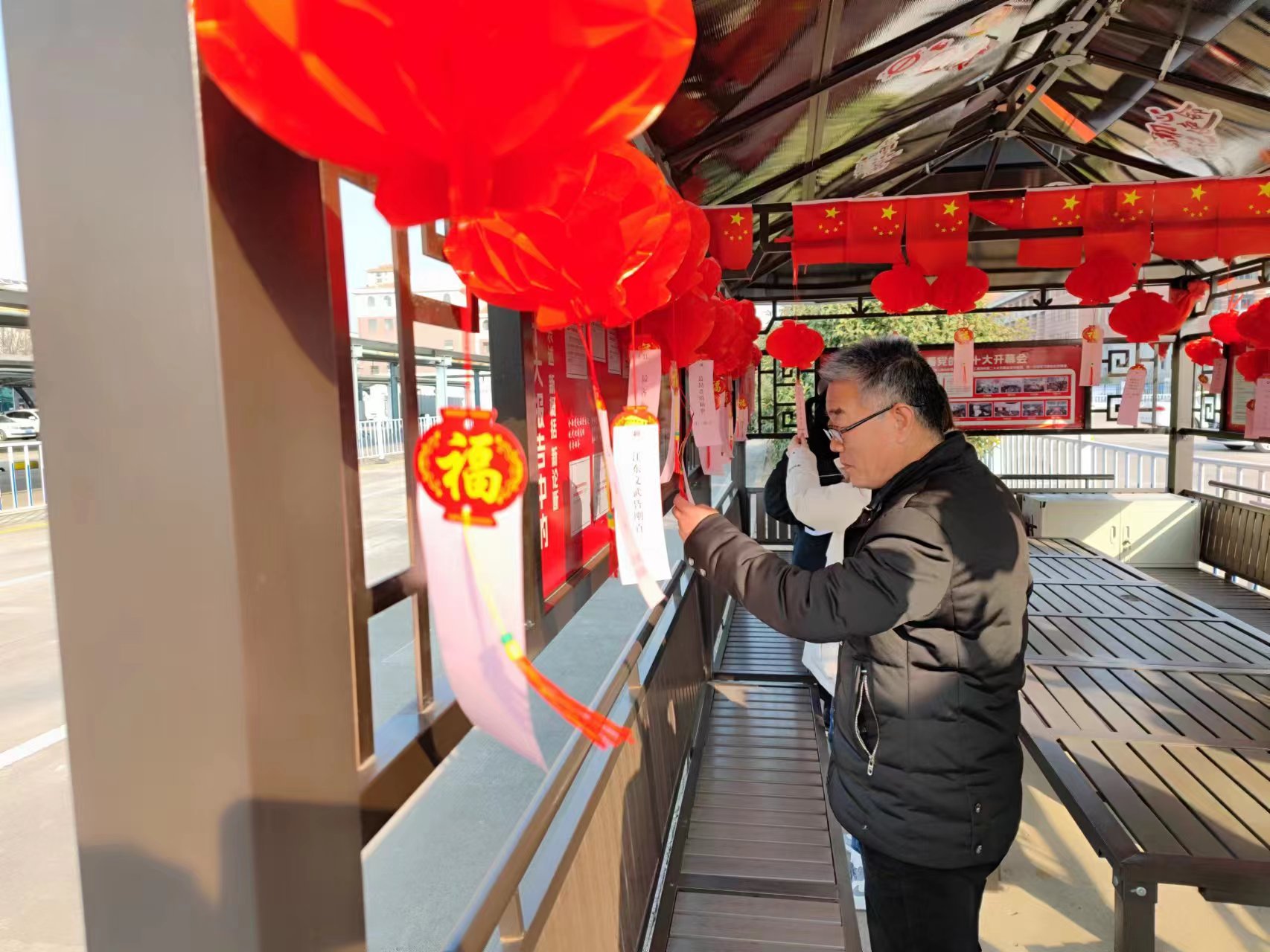 “一求为官,廉洁为先”(打一古书),“最有学问的人。(打一成语)”。当天共放出了约60条灯谜。活动现场,融知识性、趣味性为一体的灯谜悬挂在红心亭供干部职工们竞猜,谜面涵盖安全、党建、廉政、生活、历史等事项一应具全,谜底包含字谜、安全知识、成语、历史知识等内容应有尽有,若没有“现代手段”还是要费一番脑力。大家围在一起,有的抬头阅读、有的互相探讨,纷纷使出浑身解数、踊跃竞猜,分享猜谜经验,共享竞猜乐趣。