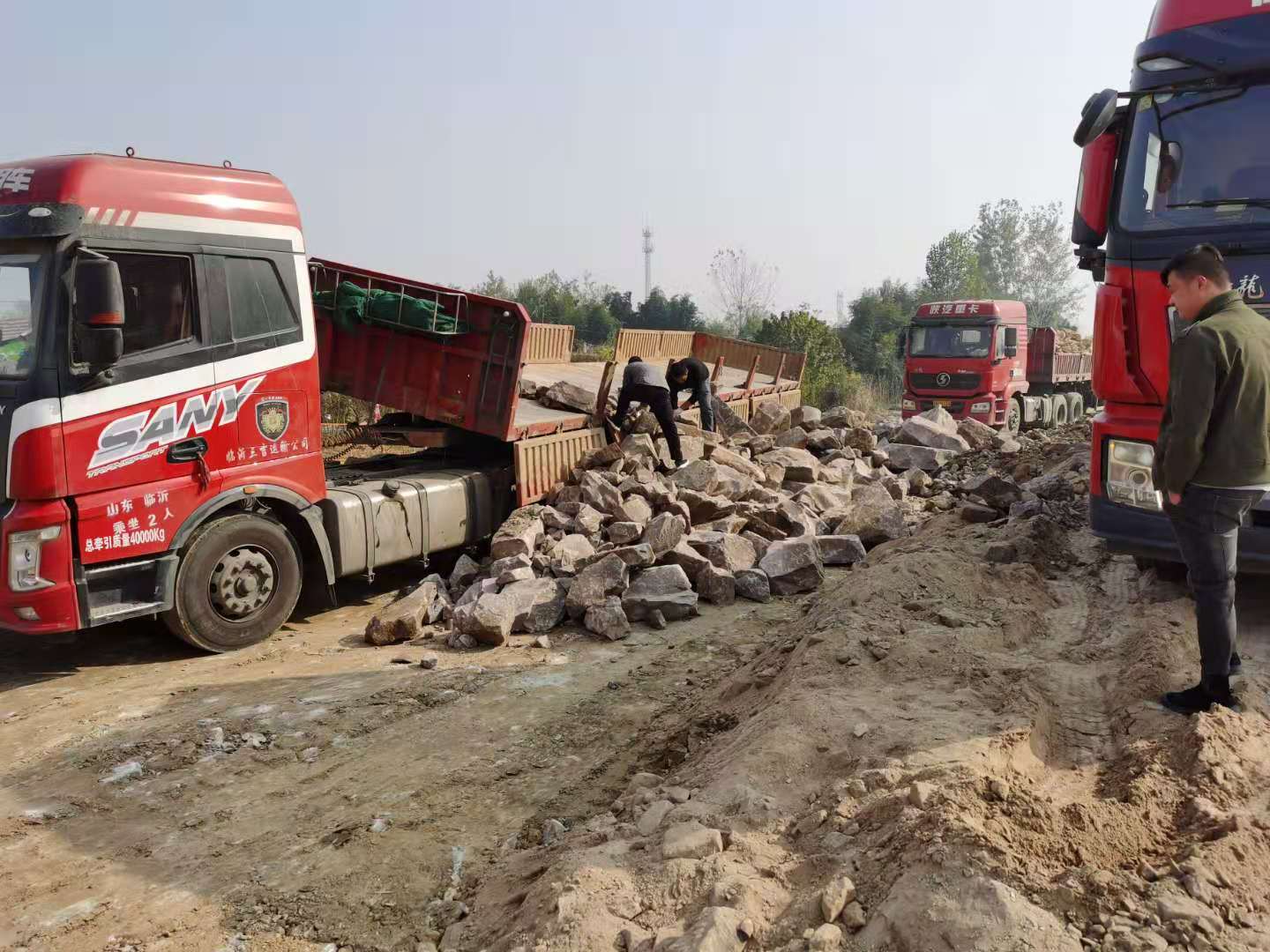 花果山新机场连接线道路工程的底基层设计要求是:先软基清表,用石灰土处理,压实度达到90%;再用含石量70%的山场碎石进行填筑。总方量达32万余吨。因本市境内环境保护,没有山场碎石材料,经过市场调研,碎石料全部从山东釆运,运距达200多千米(正常运输道路有限高、限载,需绕道沐阳县)、乡镇道路狭窄(运输车会车难,易拥堵)、一路上交警查验严格(稍有不慎,就被罚款、扣分)、加上先前运输投标价偏低,车主和司机的积极性不高,一时间收不到碎石,给山场碎石填筑施工造成困难。项目部针对现场情况进行认真的分析研究,积极采取措施,开工伊始便紧锣密鼓地安排24小时不停收料,及时向公司汇报情况,适当上调运输价格并给予充足的资金保证,与分包车队进行主动沟通、洽商,多方协调增加运输车辆,同时项目部严格控制方量、山场碎石的含石量和碎石强度。经过不懈努力,做到了保质保量,顺利推进工程进入下一道工序。