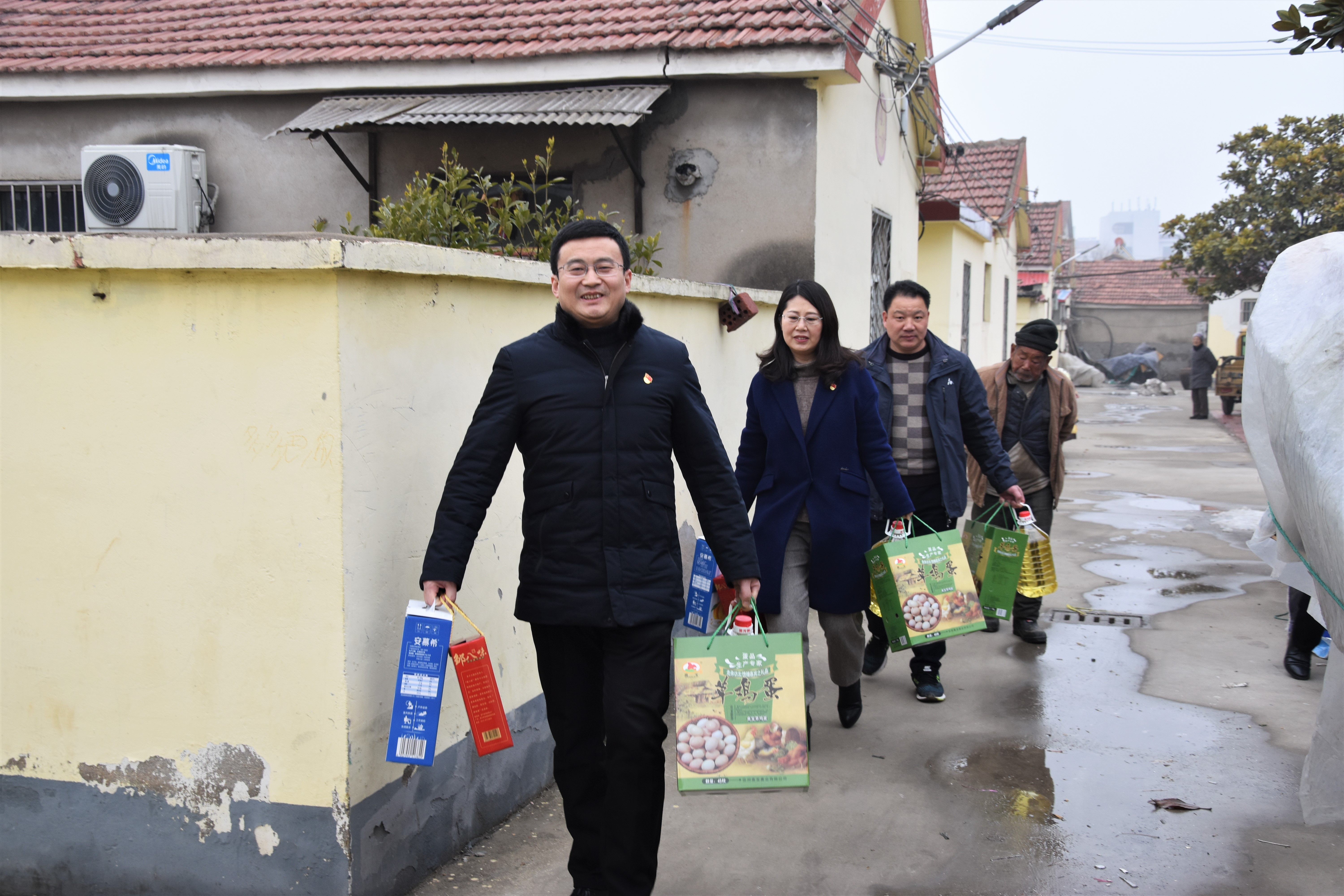 这是坐落在赣榆区青口镇中的一处城中村,是交通集团的文明共建单位,在老人们家中,吴心航仔细查看了老人的居住环境,检查了冬季取暖设备。“老人家,身体还好吧?冬天冷不冷啊?”一声声的问候和关怀温暖了老人们的心。吴心航代表交通集团向梁庄社区的老人们拜了个早年并向他们送去了新春的慰问。